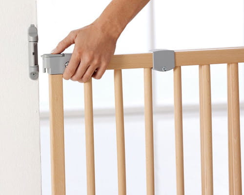 Bramka Flexi Fit może otwierać się w obu kierunkach. Szybkie i wygodne zamknięcie ułatwia montaż i odłączanie bramki w razie potrzeby.