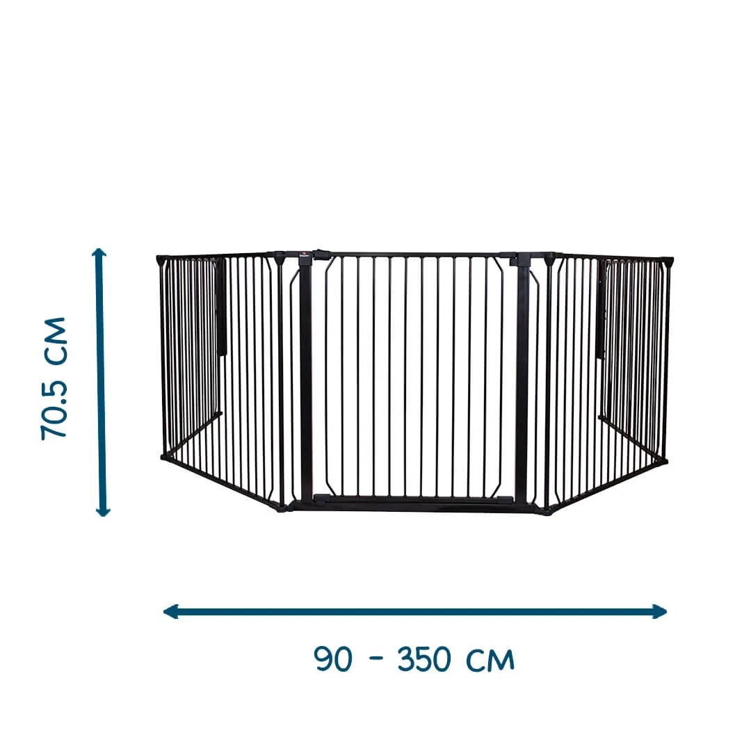 Bramka Carl XXX Wide to idealne rozwiązanie do zabezpieczania dużych przestrzeni w domu. Dzięki imponującej szerokości aż do 350 cm świetnie sprawdza się jako bariera w szerokich przejściach, przy kominkach lub jako bezpieczny podział pomieszczenia.