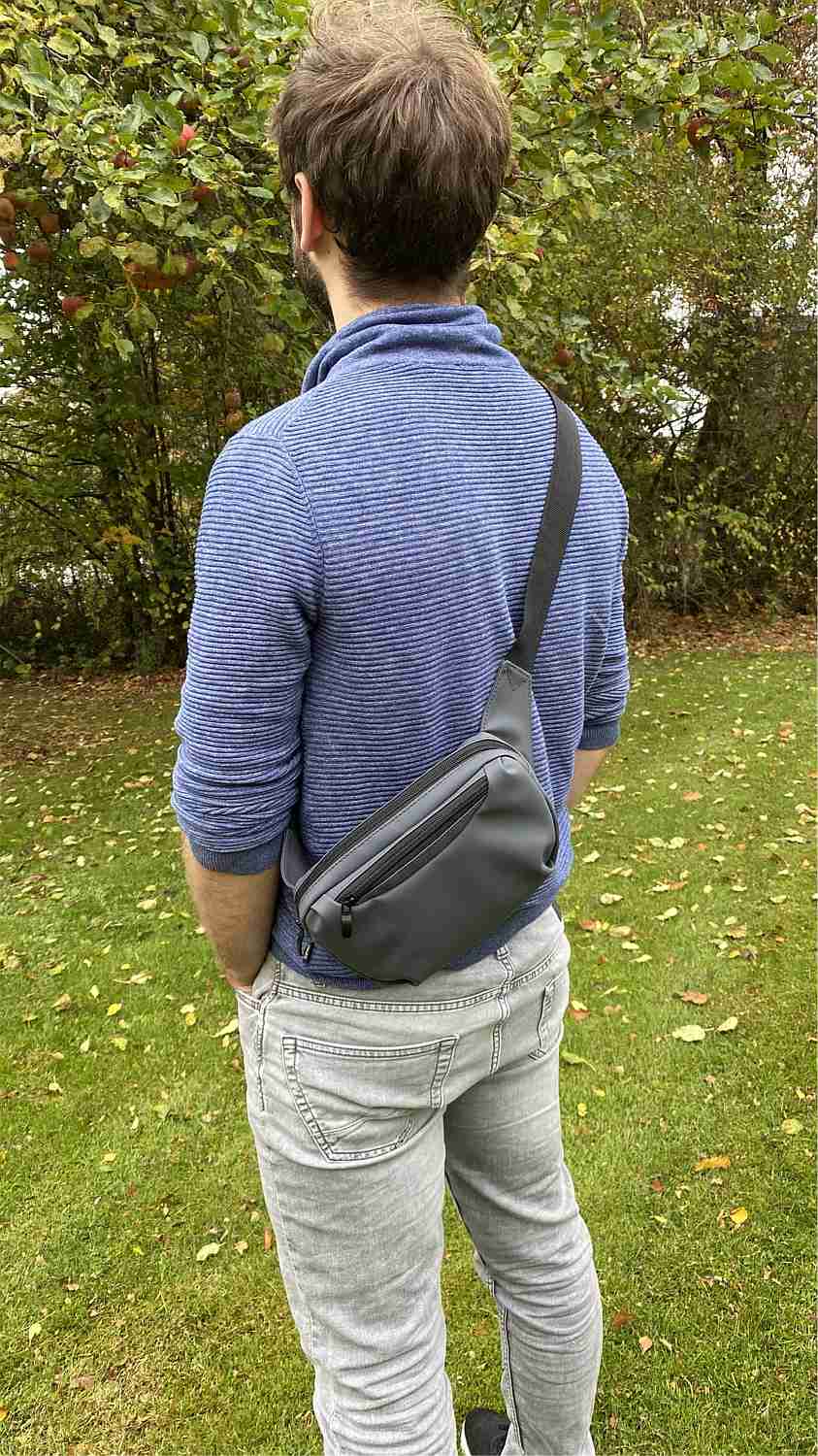 Możesz nosić torbę na pieluchy jako saszetkę lub torbę na ramię lub przedłużyć pasek i nosić ją jako cross-over. W dużej kieszeni na środku jest dużo miejsca na pieluchy i chusteczki nawilżane. Nieco węższa przednia kieszeń zapewnia miejsce na telefon lub portfel.