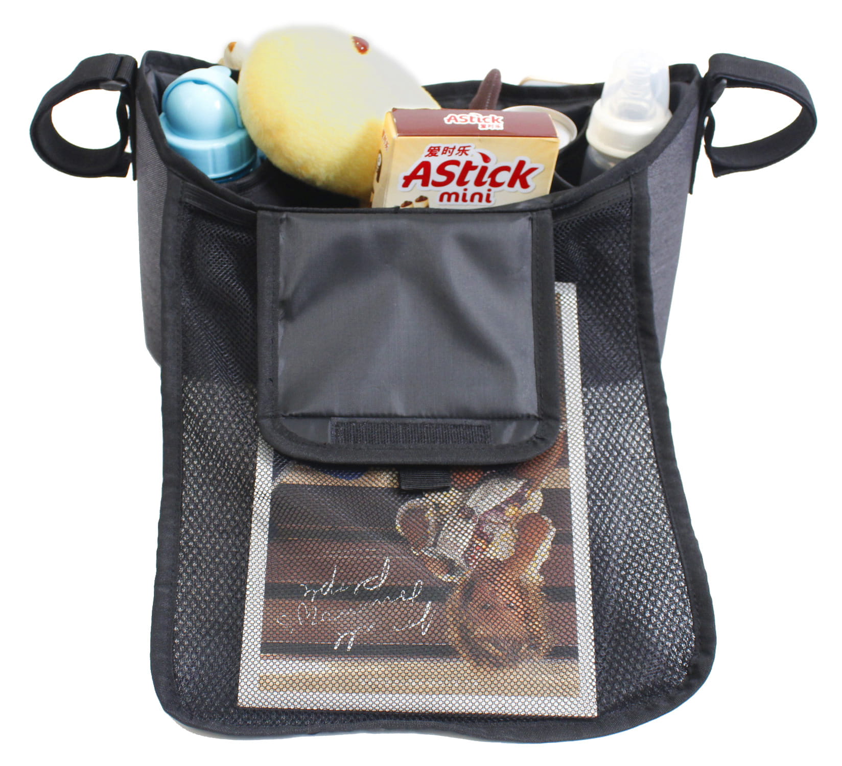 Organizer do wózka marki Baby Dan to idealny sposób na trzymanie podręcznych rzeczy bliżej siebie. Wewnątrz organizer posiada jedną większą kieszeń idealną na pieluszkę, chusteczki czy przekąski oraz dwie mniejsze kieszonki przeznaczone na np. butelkę lub kubek. Z zewnątrz organizera znajdują się dwie małe kieszonki, w których można przechowywać np. klucze lub telefon.