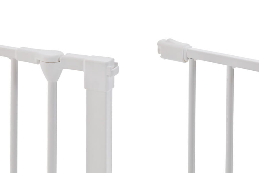 - Niezwykle prosty system mocujący. Po zainstalowaniu uchwytów ściennych, demontaż i ponowny montaż samej bramki zajmuje zaledwie kilka sekund i to bez użycia jakichkolwiek narzędzi!