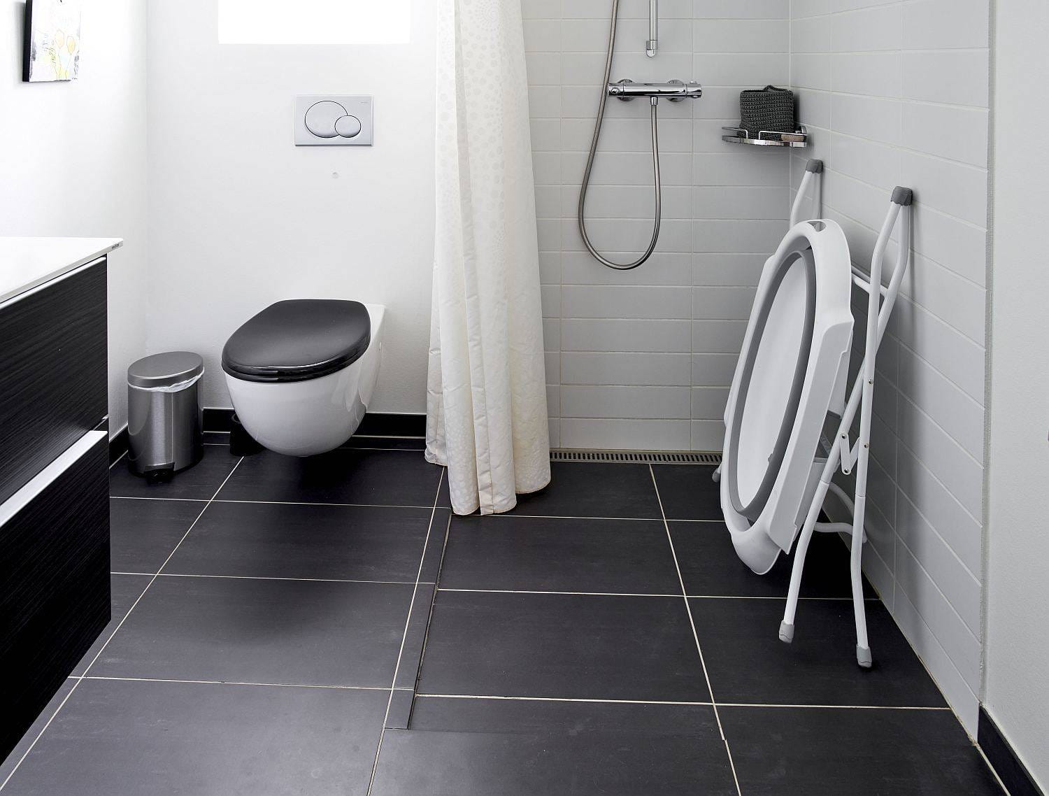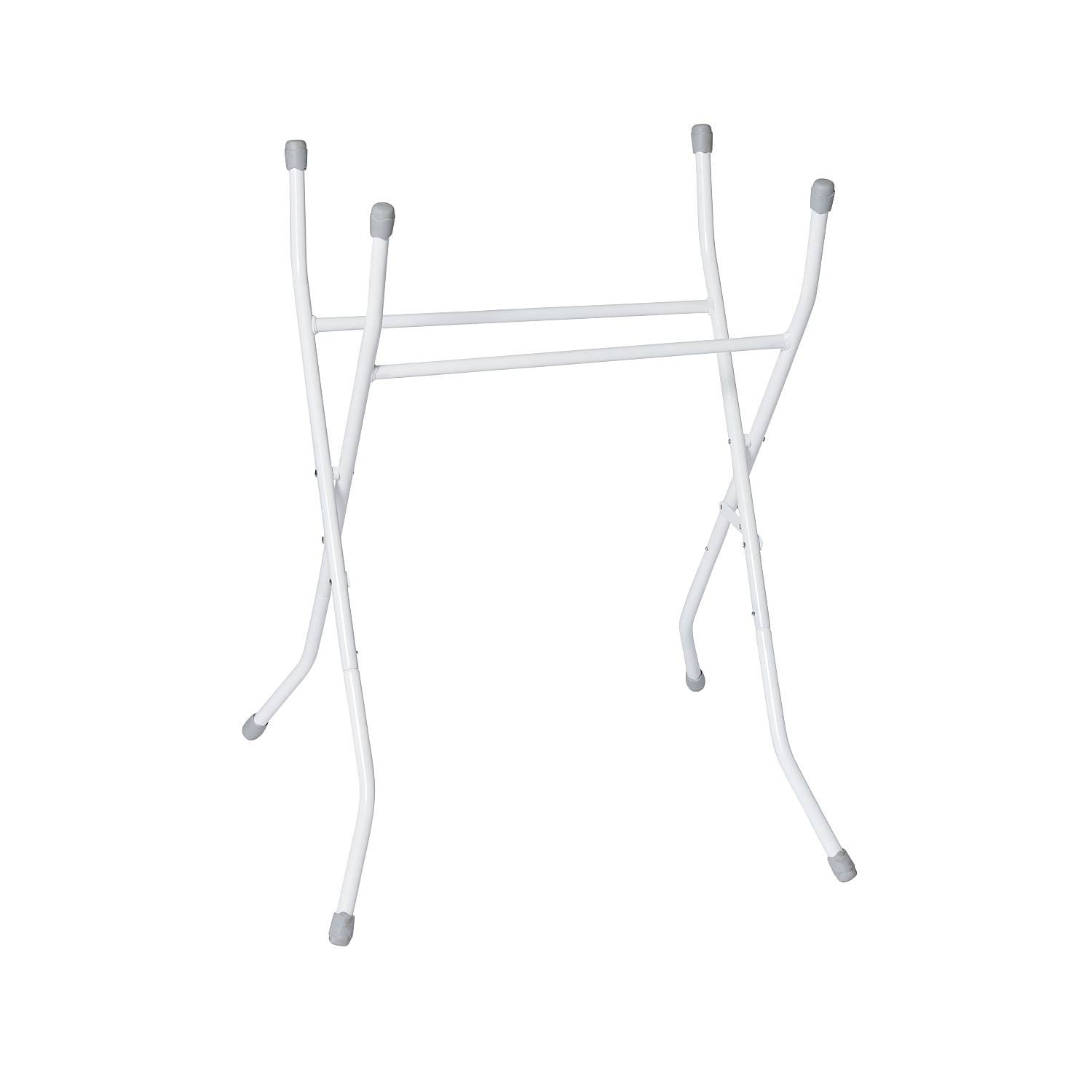 Stojak na wannę można łatwo złożyć, dzięki czemu nie zajmuje dużo miejsca. Gumy na końcach zapewniają, że stojak się nie ślizga.