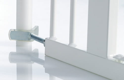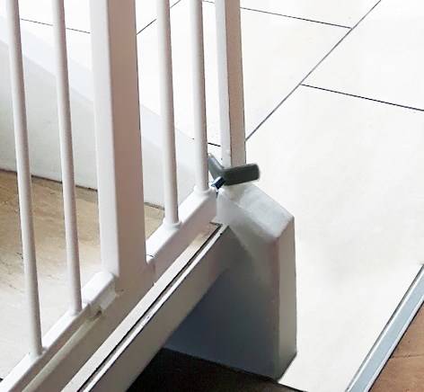 - Pokryte miękkim materiałem antypoślizgowym, który zabezpiecza balustradę przezd porysowaniem oraz zwiększa stabilność montażu bramki.