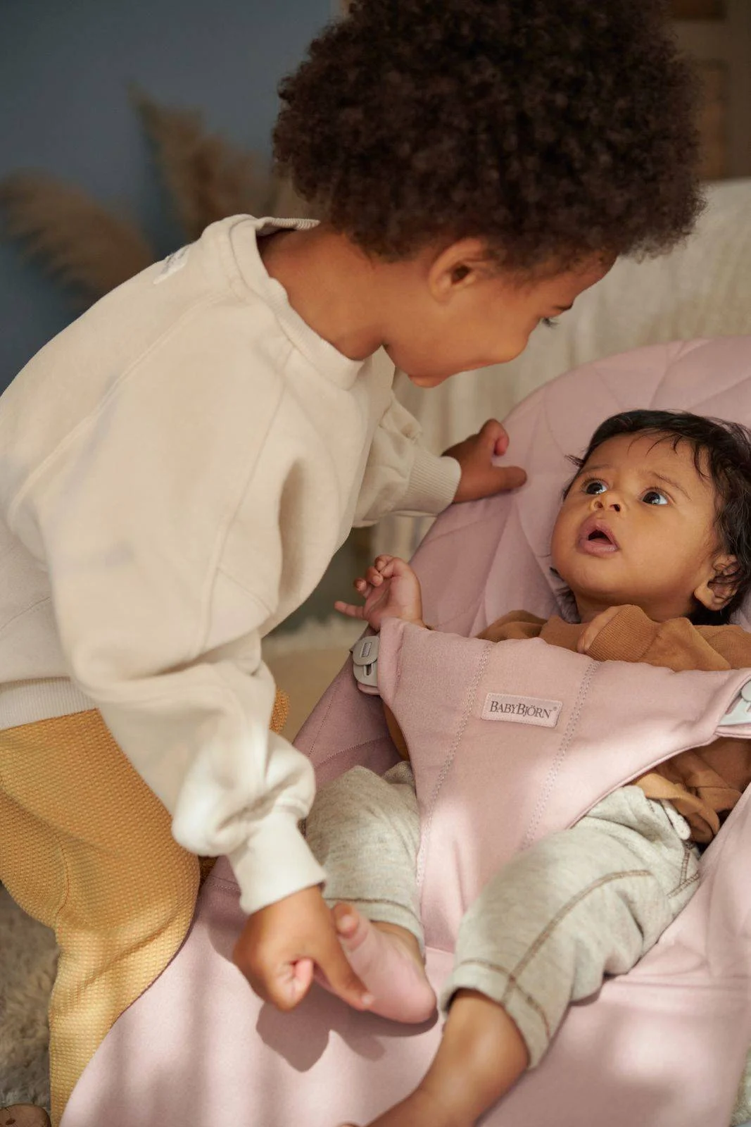 BABYBJORN - leżaczek BLISS Woven, Petal Quilt, Zgaszony róż + Zabawka Googly Eyes Pastels