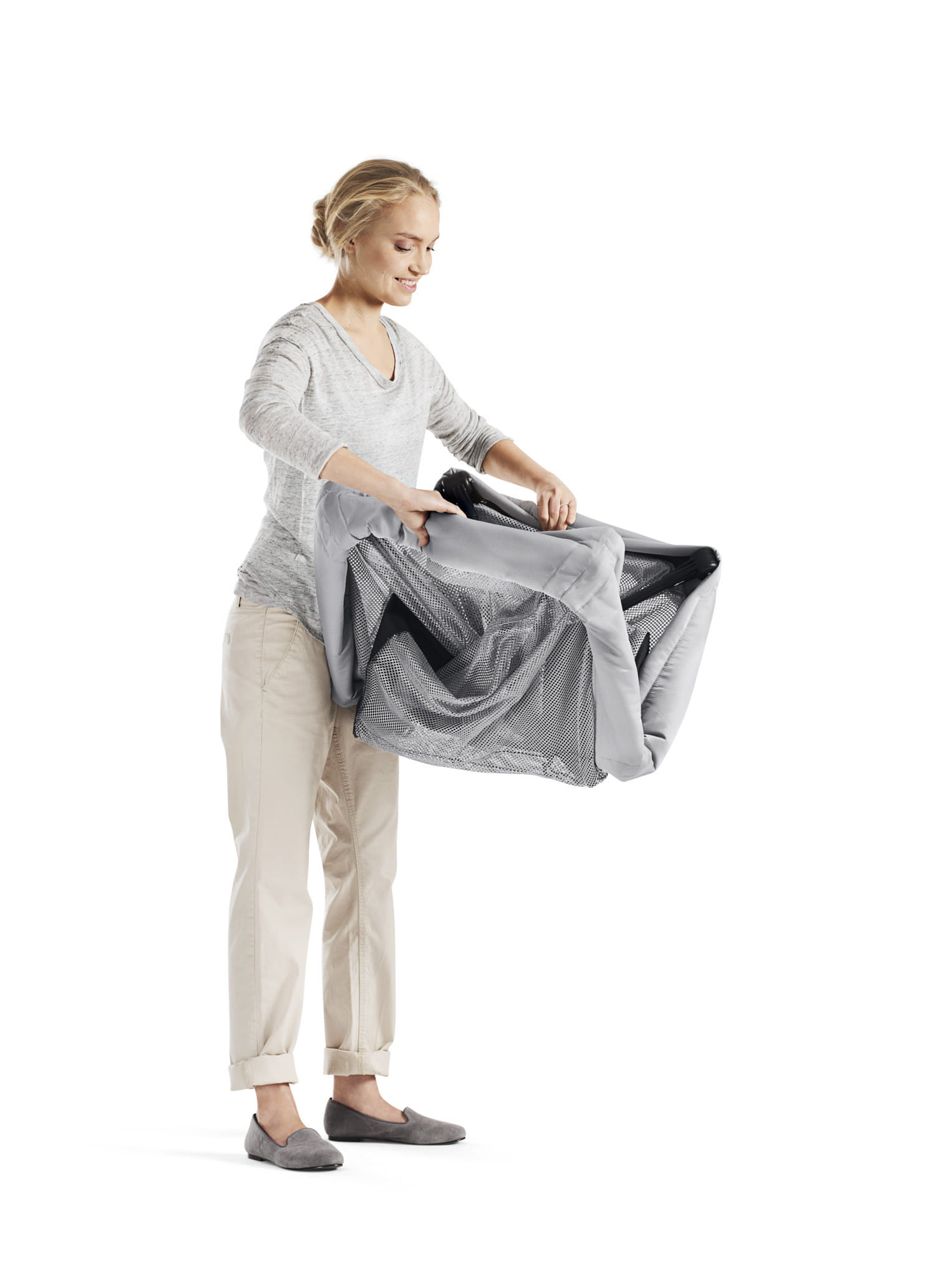 Łóżeczko turystyczne BABYBJÖRN wykonane jest z miękkiej i przewiewnej tkaniny mesh, która pozwala dziecku swobodnie oddychać, nawet jeśli twarz dziecka znajdzie się blisko boków łóżeczka. Dodatkowo siateczka ułatwia opiekunowi obserwację dziecka. - Bezpieczne i atestowane materiały