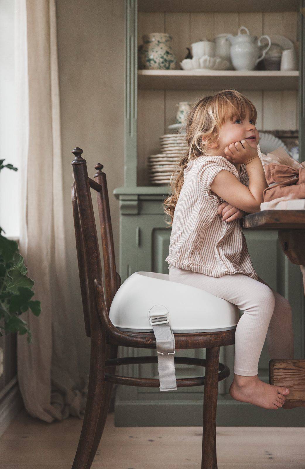 Czy Twoje dziecko wyrosło już ze swojego krzesełka do karmienia? Czy chciałoby siedzieć przy stole na takim samym krześle, jak Ty? Nakładka na krzesło umożliwia i pomaga dziecku usiąść przy stole bez konieczności siedzenia na kolanach dorosłej osoby lub przesuwania się na poduszkach. Twoje dziecko, używając nakładki, siedzi bezpiecznie i komfortowo. Może skupić się na posiłkach i włączać się w to, co dzieje się wokół stołu. Odpowiednie dla dzieci od 3 roku życia.