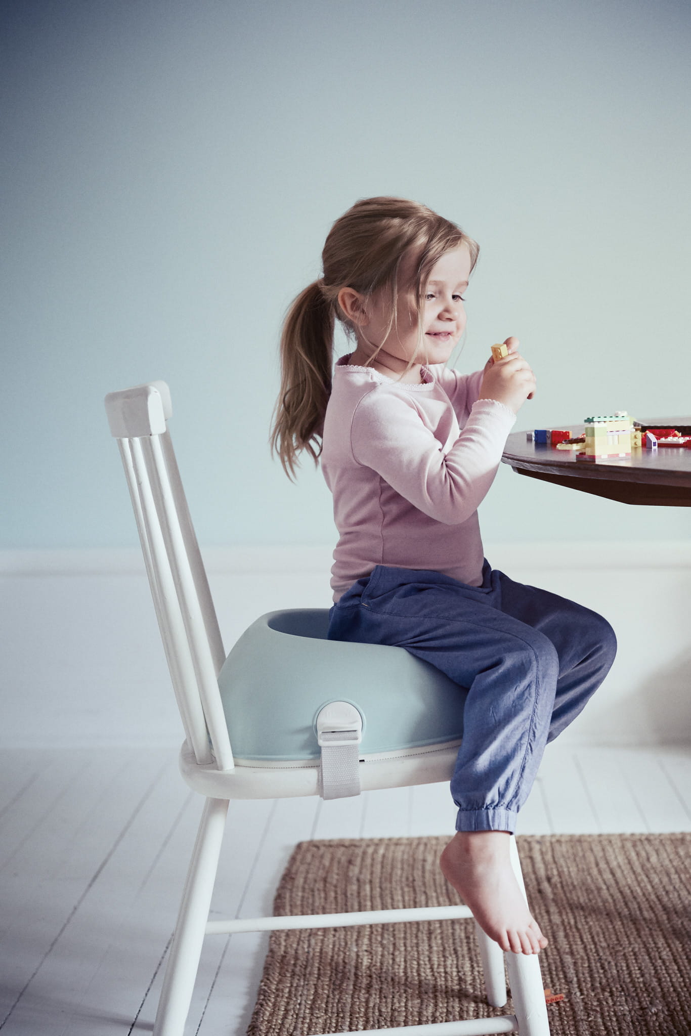 Czy Twoje dziecko wyrosło już ze swojego krzesełka do karmienia? Czy chciałoby siedzieć przy stole na takim samym krześle, jak Ty? Nakładka na krzesło umożliwia i pomaga dziecku usiąść przy stole bez konieczności siedzenia na kolanach dorosłej osoby lub przesuwania się na poduszkach. Twoje dziecko, używając nakładki, siedzi bezpiecznie i komfortowo. Może skupić się na posiłkach i włączać się w to, co dzieje się wokół stołu. Odpowiednie dla dzieci od 3 roku życia.