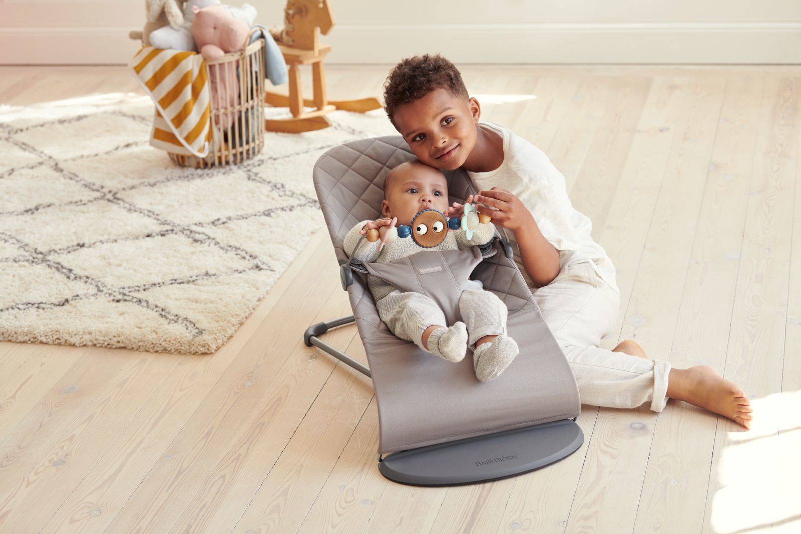Urocza i zabawna zabawka, którą Twoje dziecko od razu pokocha! W pastelowych kolorach, pełna ciekawych kształtów i możliwości obracania - idealna do oglądania, dotykania i wspólnej zabawy! Zabawka do leżaczka BABYBJORN pomaga również dziecku odkrywać jego możliwości fizyczne i rozwijać zdolności motoryczne.
