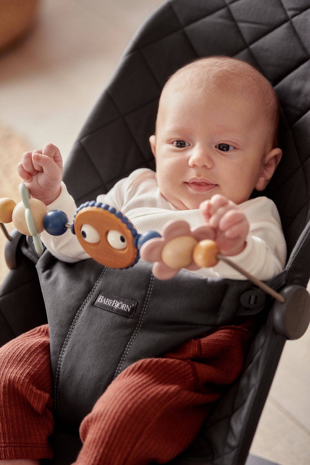 - Zabawka do leżaczka jest przetestowana i bezpieczna - Zabawka jest całkowicie bezpieczna dla dziecka do smaku lub ssania. Wszystkie produkty z tworzyw sztucznych firmy BABYBJORN spełniają odpowiednie wymogi bezpieczeństwa tworzyw sztucznych w Europie i USA. Oznacza to, że plastik, którego używa firma przechodzi ciągłe, rygorystyczne testy na obecność bisfenolu A (BPA) i innych szkodliwych substancji i jest certyfikowany jako bezpieczny dla żywności.