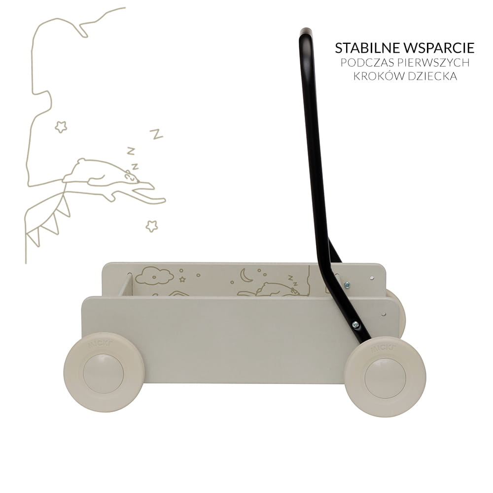 Beżowy wózek na klocki chodzik pchacz drewniany Micki