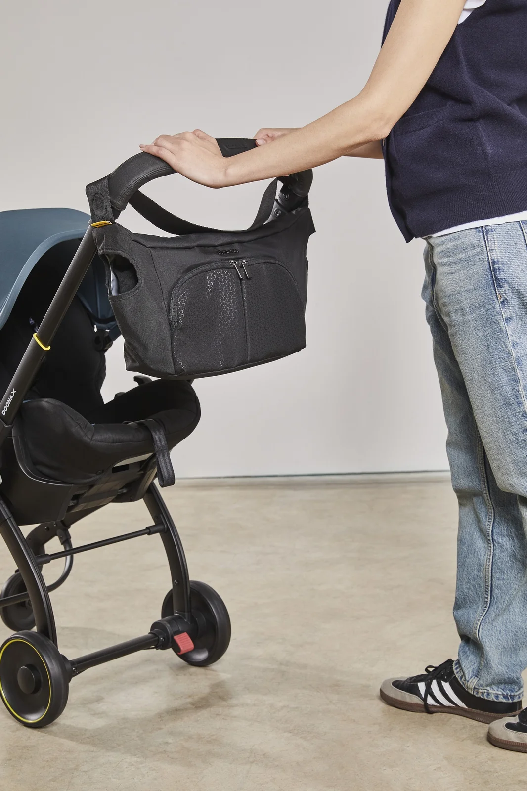 Kompaktowa i lekka torba pasuje do rączki fotelika samochodowego i wózka Doona, dzięki unikalnym szybkozłączom Doona.