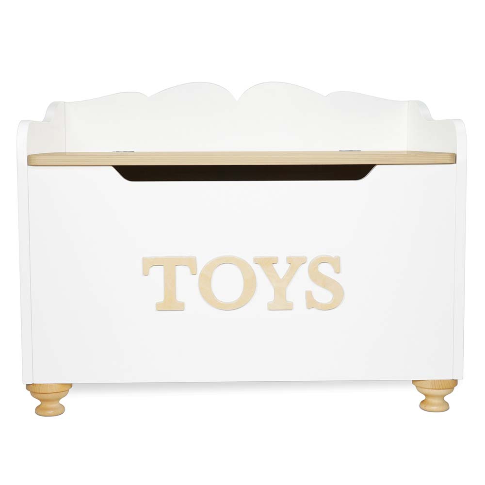 Utrzymuj porządek i styl w pokoju zabaw lub pokoju dziecięcym za pomocą tej eleganckiej skrzyni z przykrywką, która pełni również funkcję wygodnego siedziska!