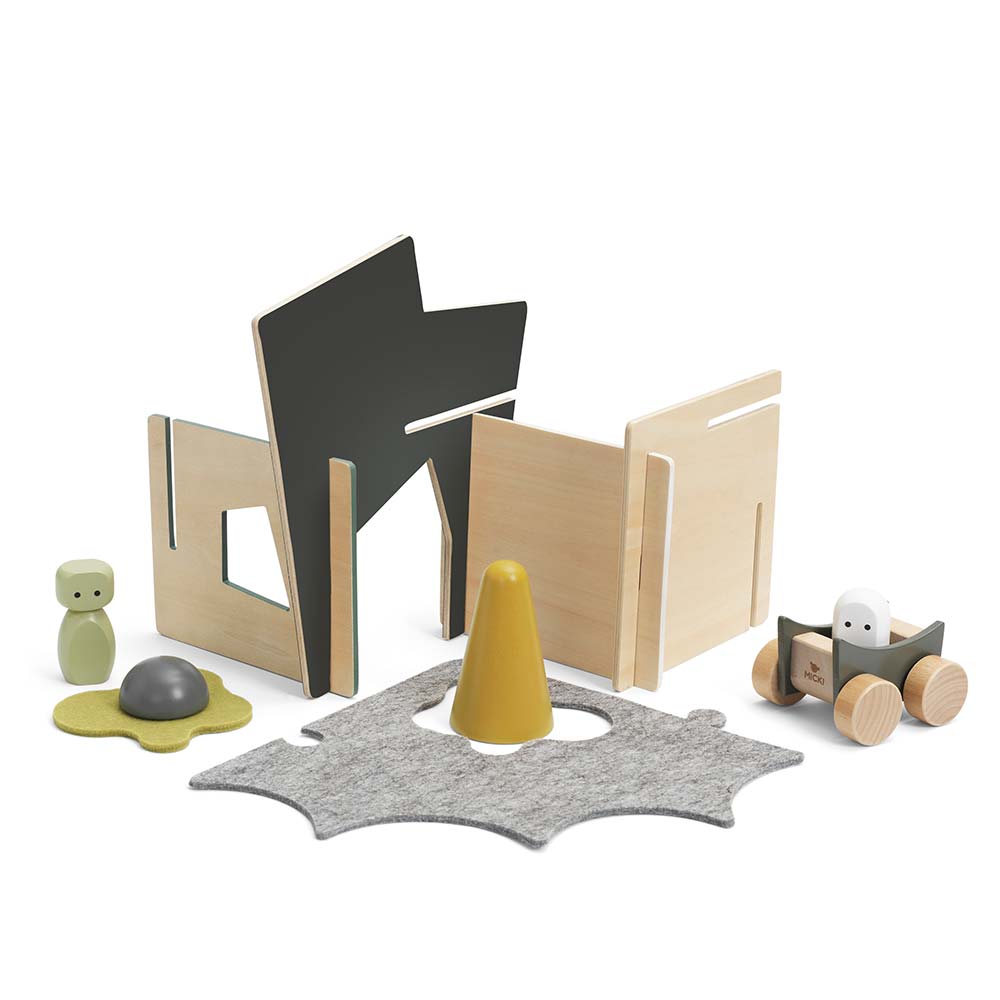 Rozpocznij pełną wyobraźnię zabawę dzięki Micki Play World Potwory. Zestaw ten zawiera 4 ściany, 2 figurki, 1 samochód, 1 drzewo, 1 kamień/krzak, 5 magnesów (księżyc, nietoperz, dynia, oczy i pajęczyna) oraz matę do zabawy z filcu podzieloną na dwie części. Produkt ten jest integralną częścią różnorodnych Światów Zabawy i zestawów akcesoriów, które można łączyć, rozbudowywać i dostosowywać według własnych preferencji. Jedynym ograniczeniem jest wyobraźnia! Pozwól dziecku odkrywać i rozwijać się poprzez fascynującą zabawę z Micki Play World!