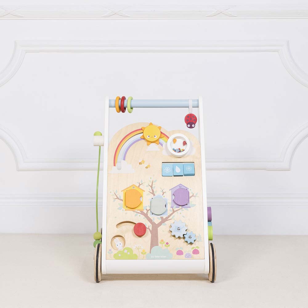 - Wielofunkcyjny drewniany chodzik z 12 różnymi aktywnościami