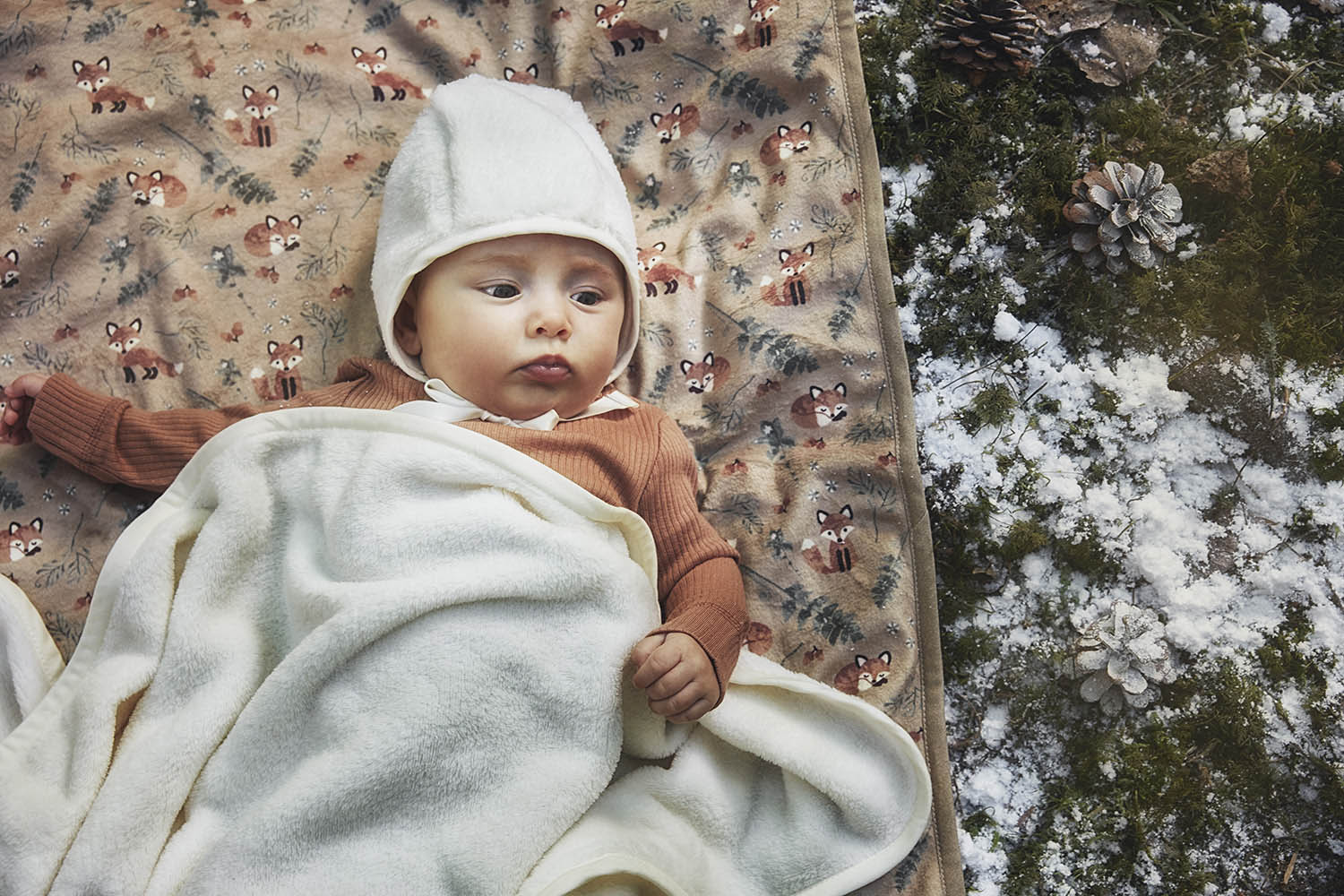 Warstwa wierzchnia czapeczki Winter Bonnet została w całości wykonana z miękkiej bawełny.