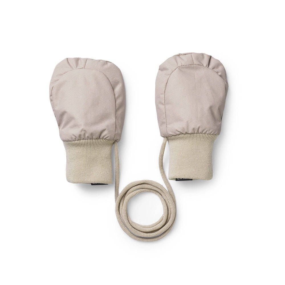Rękawiczki dziecięce Elodie Details w rozmiarze 0-12 miesięcy połączone są bawełnianą tasiemką dzięki czemu dziecko ich nie zgubi a ściągacze sprawią, że rękawiczki nie ześlizgną się z jego rączek. Rękawiczki nie posiadają kciuka. Są wygodne i ciepłe. Materiał wierzchni zawdzięcza swoje właściwości wiatroodporne i wodoodporne wykończeniu Bionic Finish RUDOLF®