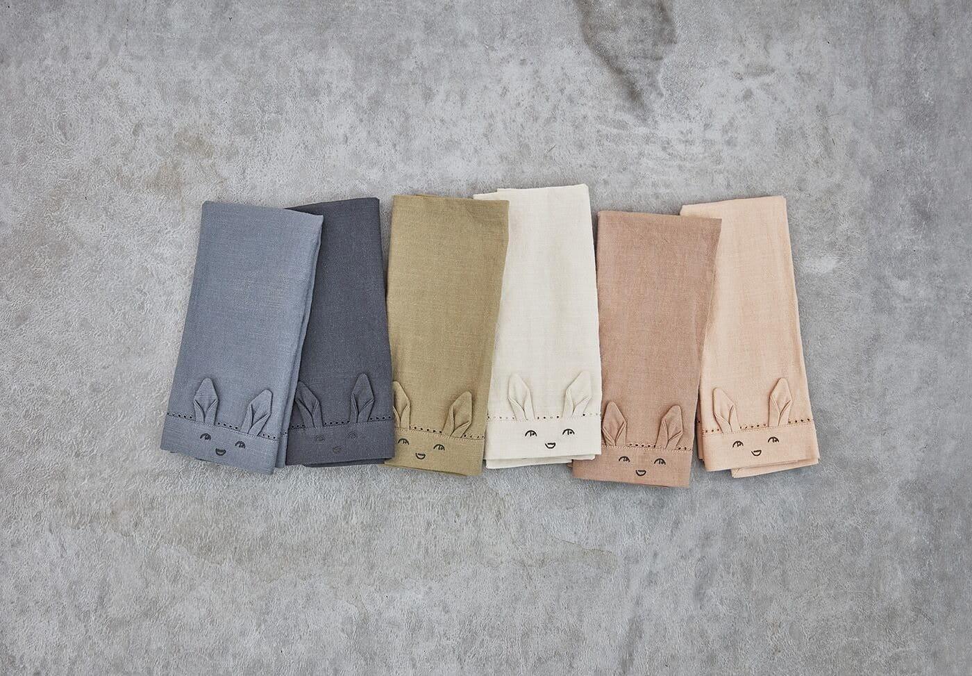 Elodie Details - zestaw serwetek dla dzieci- Eleganckie i stylowe- z przodu mają wytłoczenie w kształcie uśmiechu oraz zabawne uszka
