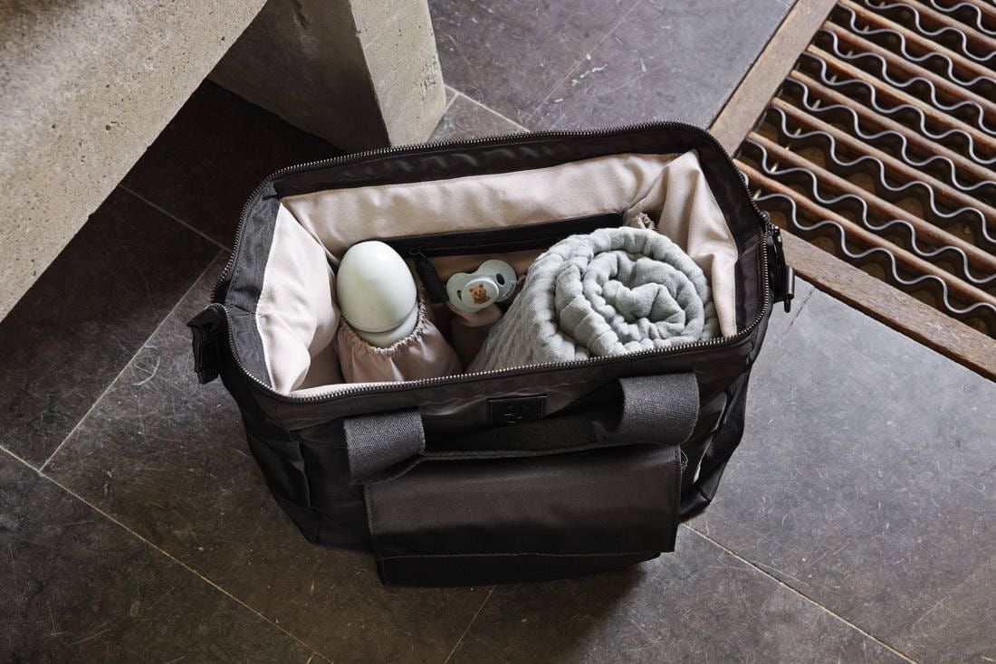 - Sprytnie ukryte dodatkowe kieszonki, między innymi na butelkę dla dziecka.