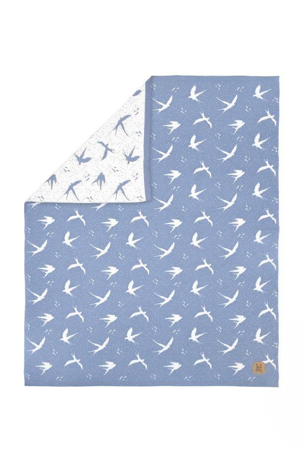 Dwustronny, tkany kocyk bawełniany z kolekcji FLY to podstawa każdej wyprawki. Dzięki swojej delikatności i lekkości nadaje się do otulenia dziecka w wózku podczas spacerów, zastąpi też kołderkę w łóżeczku.