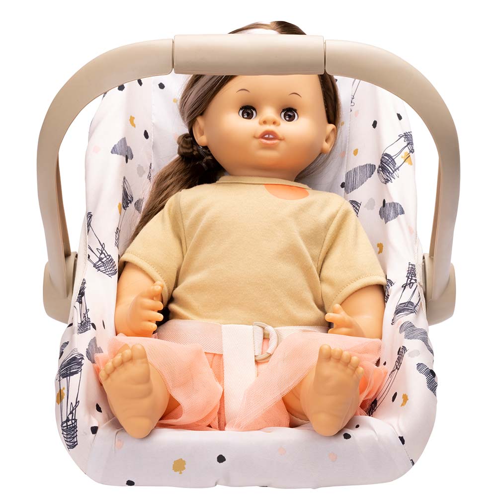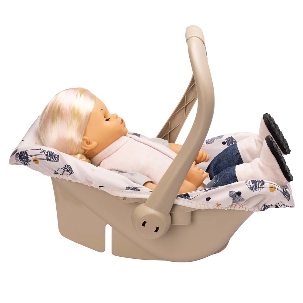 W tym foteliku samochodowym lalka siedzi bezpiecznie w samochodzie, a ty możesz zabrać ją w podróż. Gdy uchwyt regulowany fotelika jest złożony do tyłu, lalka może używać fotelika do siedzenia, odpoczynku lub zabawy. Fotelik samochodowy ma także elegancką tapicerkę, którą można zdjąć.