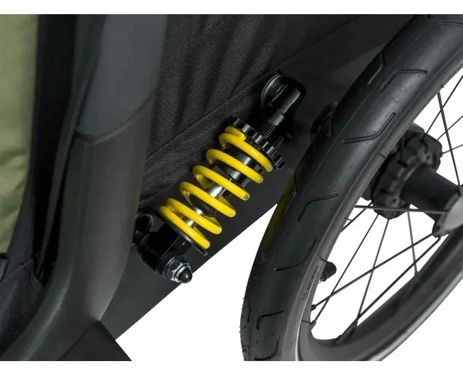 Ramię rowerowe, czyli dyszel, dzięki któremu mocujemy przyczepkę do roweru można przechowywać w dedykowanej kieszeni wewnątrz przyczepki, gdy nie jest używane. Ułatwia to przełączanie między trybami roweru i wózka bez zajmowania dodatkowej przestrzeni.