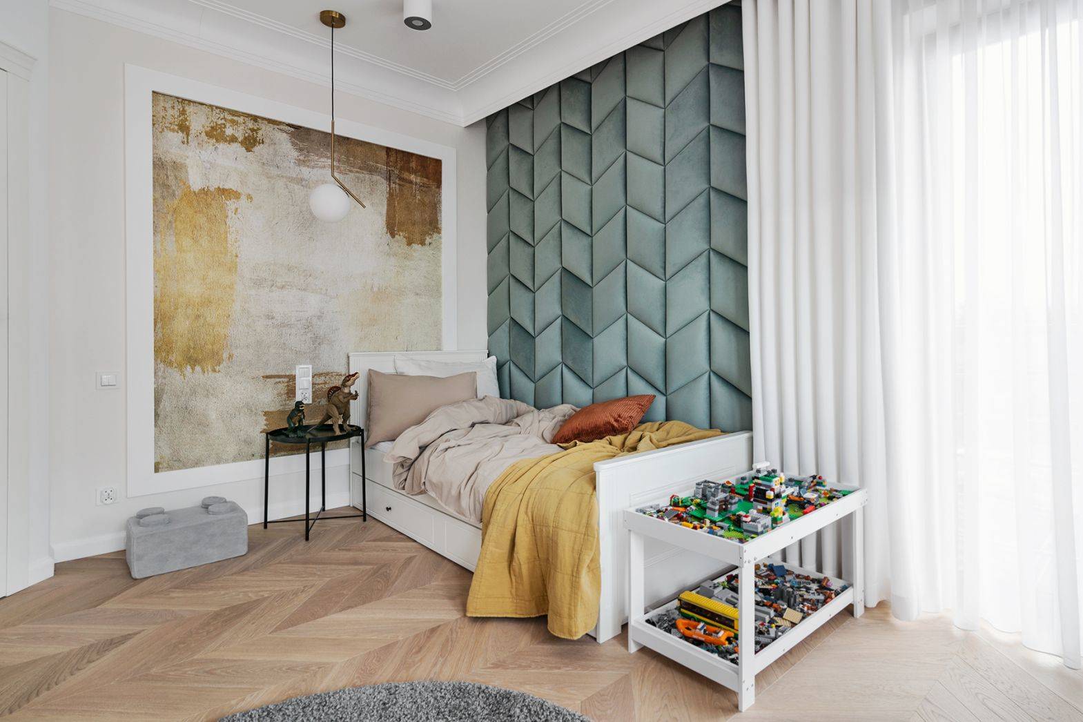Design łóżka sprawia, że będzie ono dobrze prezentowało się ustawione przy ścianie jak i na środku pokoju.