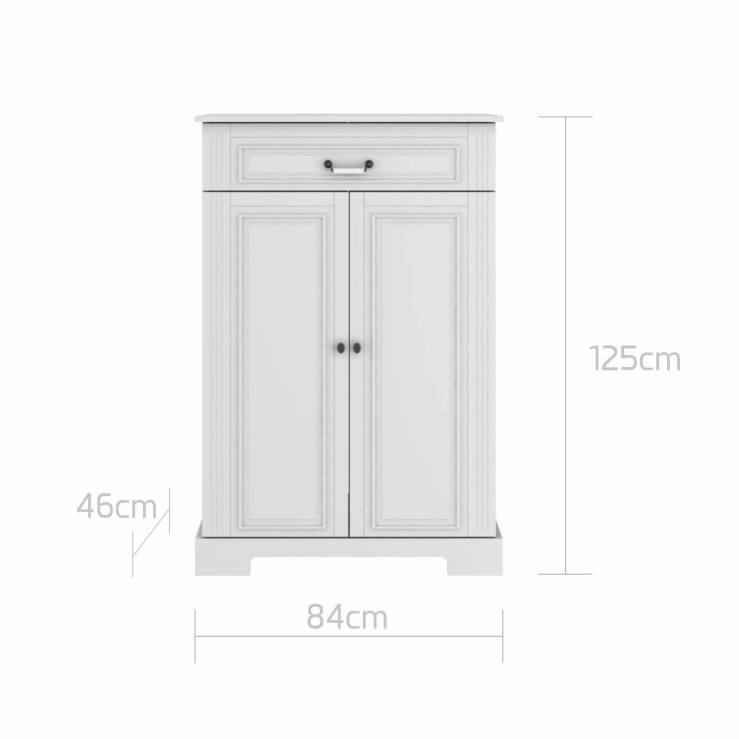 Wysoka komoda 2-drzwiowa z kolekcji Ines jest utrzymana w klasycznym stylu, pełnym elegancji w połączeniu z maksymalną funkcjonalnością.