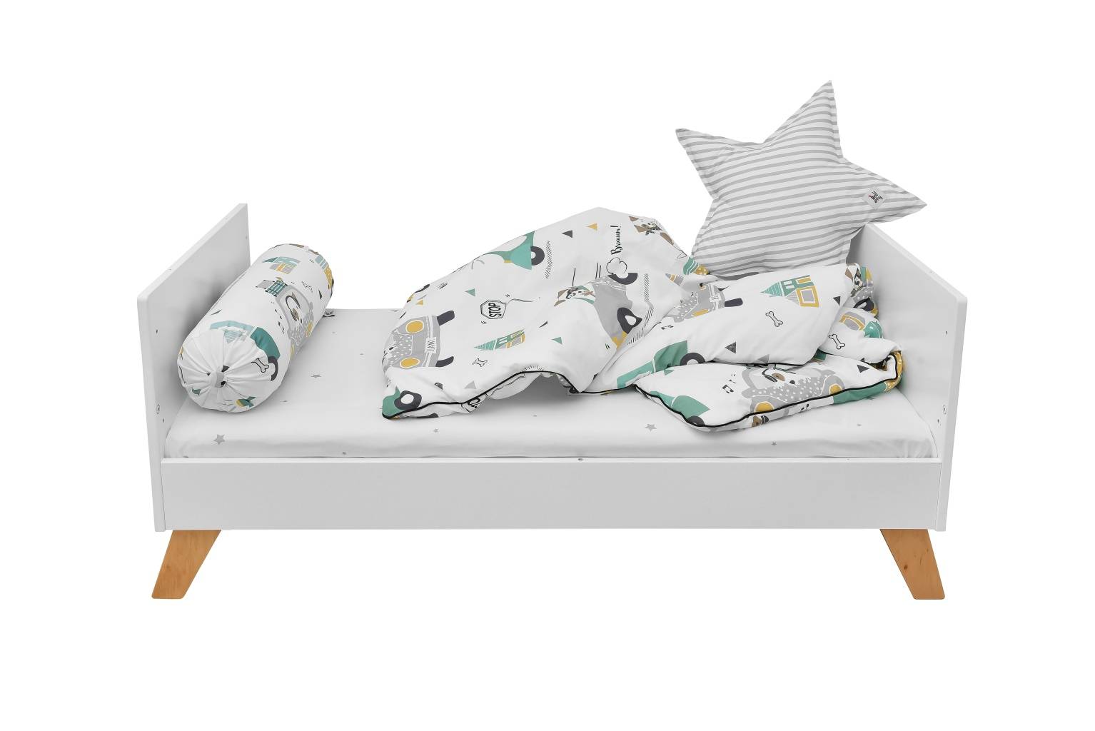 Pościel została zaprojektowana i wyprodukowana w Polsce z najwyższa starannością o detale. Zapakowana jest w transparentną biodegradowalna torbę. Będzie idealnym prezentem na baby shower, urodziny lub inną okazję.
