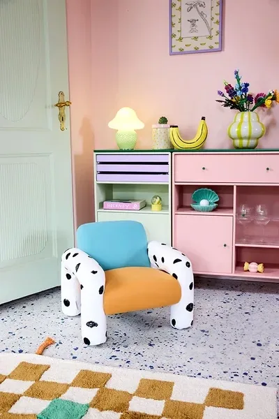 Nieustraszona postawa Pippi Długoskarpetki zamienia zwykłe chwile w niezwykłą przygodę, a ten fotel wnosi do domu odrobinę tego radosnego ducha. Tapicerowany miękką w dotyku tkaniną, posiada wzór w kropki inspirowany koniem Pippi – wiernym towarzyszem jej szalonych pomysłów. To mebel z charakterem, idealny dla każdego, kto tak jak Pippi uważa, że zawsze warto próbować nowych rzeczy.