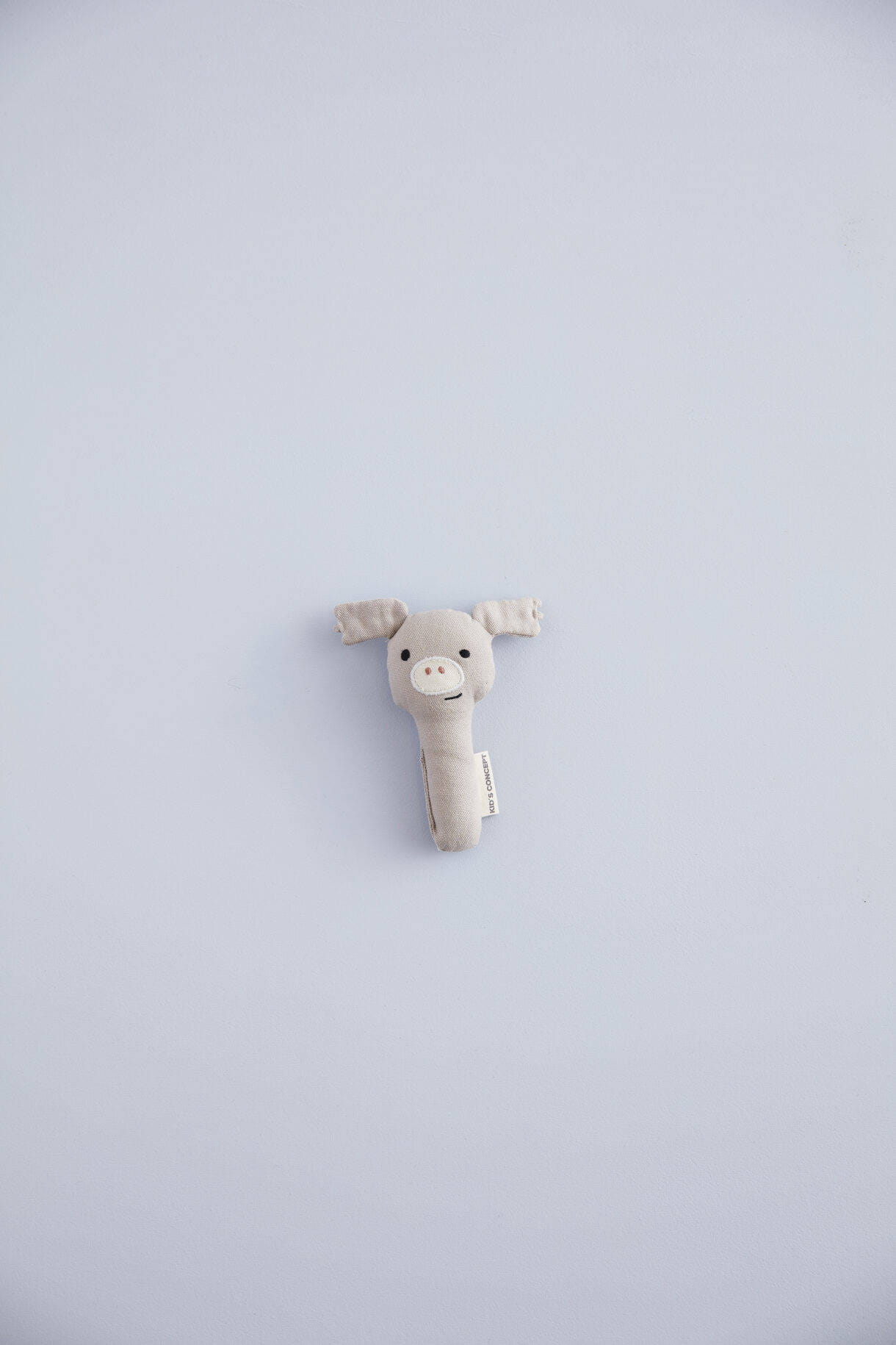 Grzechotka Bo jest wykonana z ekobawełny. Haftowane detale urozmaicają fakturę zabawki przez co stymulują zmysły dotyku. Kiedy potrząśniesz grzechotką z jej środka dobiegnie cichy dźwięk. Zabawka ma kształt i wielkość odpowiednią dla małych rączek. Chwycenie jej i trzymanie nie sprawi dziecku trudności.