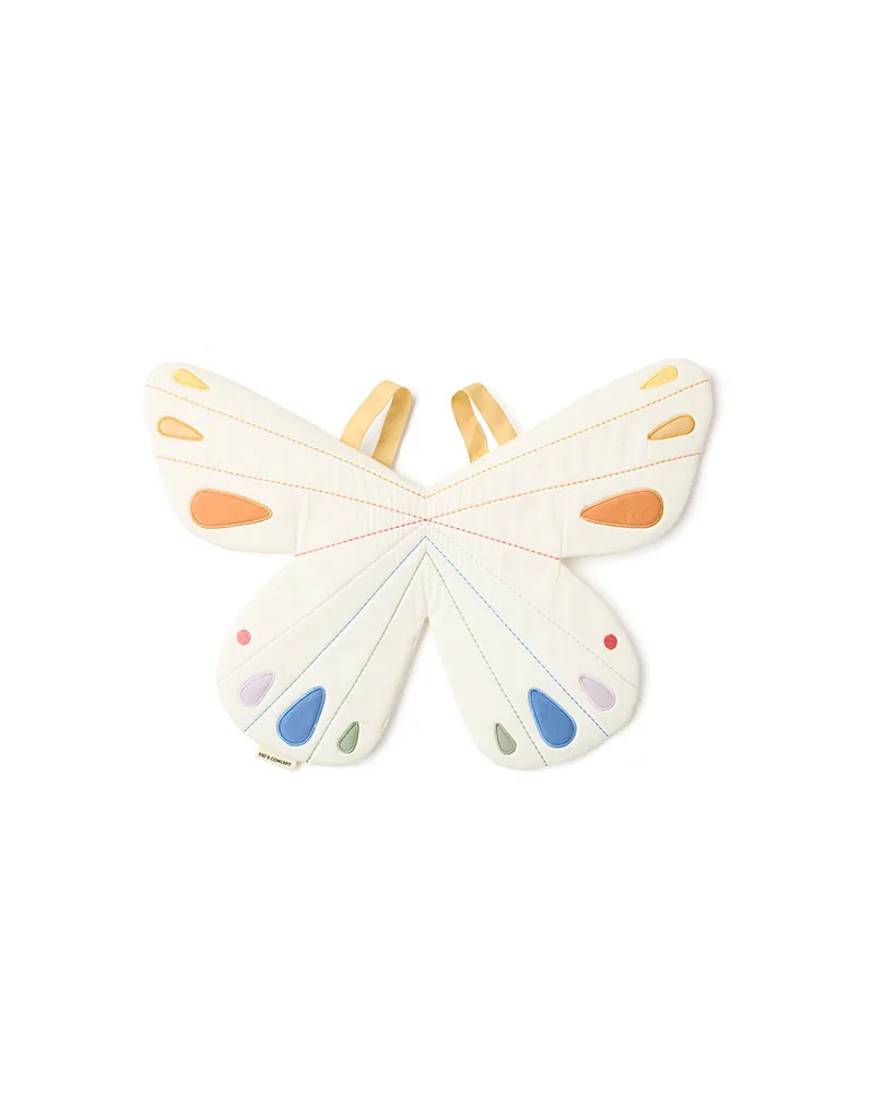 Skrzydła motyla Elodie w odcieniach zieleni i z wielobarwnymi haftami to wyjątkowy dodatek do zabawy w przebieranki. Elastyczne szelki umożliwiają dziecku samodzielne założenie skrzydeł i od razu rozpoczęcie zabawy. Dzięki miękkiemu wypełnieniu skrzydła zachowują swój kształt, a dekoracyjne hafty dodają tekstury i trwałości. To idealny sposób na rozwijanie kreatywności i wyobraźni w ruchu.