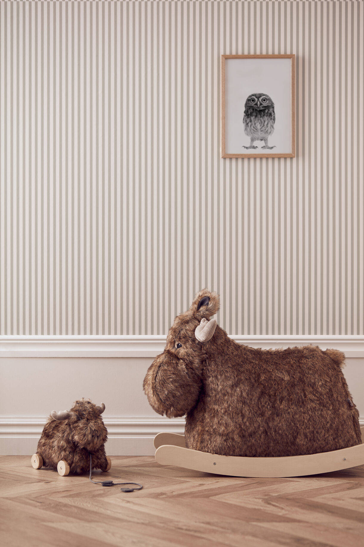 Mieszka w szwedzkim lesie ze wszystkimi innymi przyjaciółmi. Uwielbia kąpać się w pobliskich jeziorach, a jego ulubionym jedzeniem są małe czerwone jagody z jarzębiny. Zabawka to klasyczny konik na biegunach i zarazem ładna dekoracja, którą można umieścić w każdym pokoju. Nie zostawiaj dziecka na bujanym łosiu bez opieki.