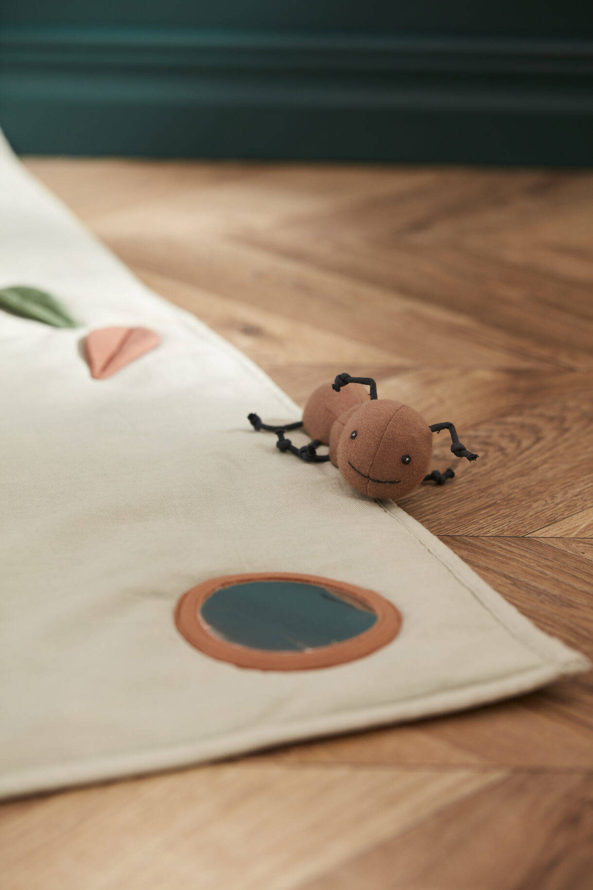 Mięciutka mata do zabawy wykonana z przyjemnej w dotyku bawełny organicznej.
