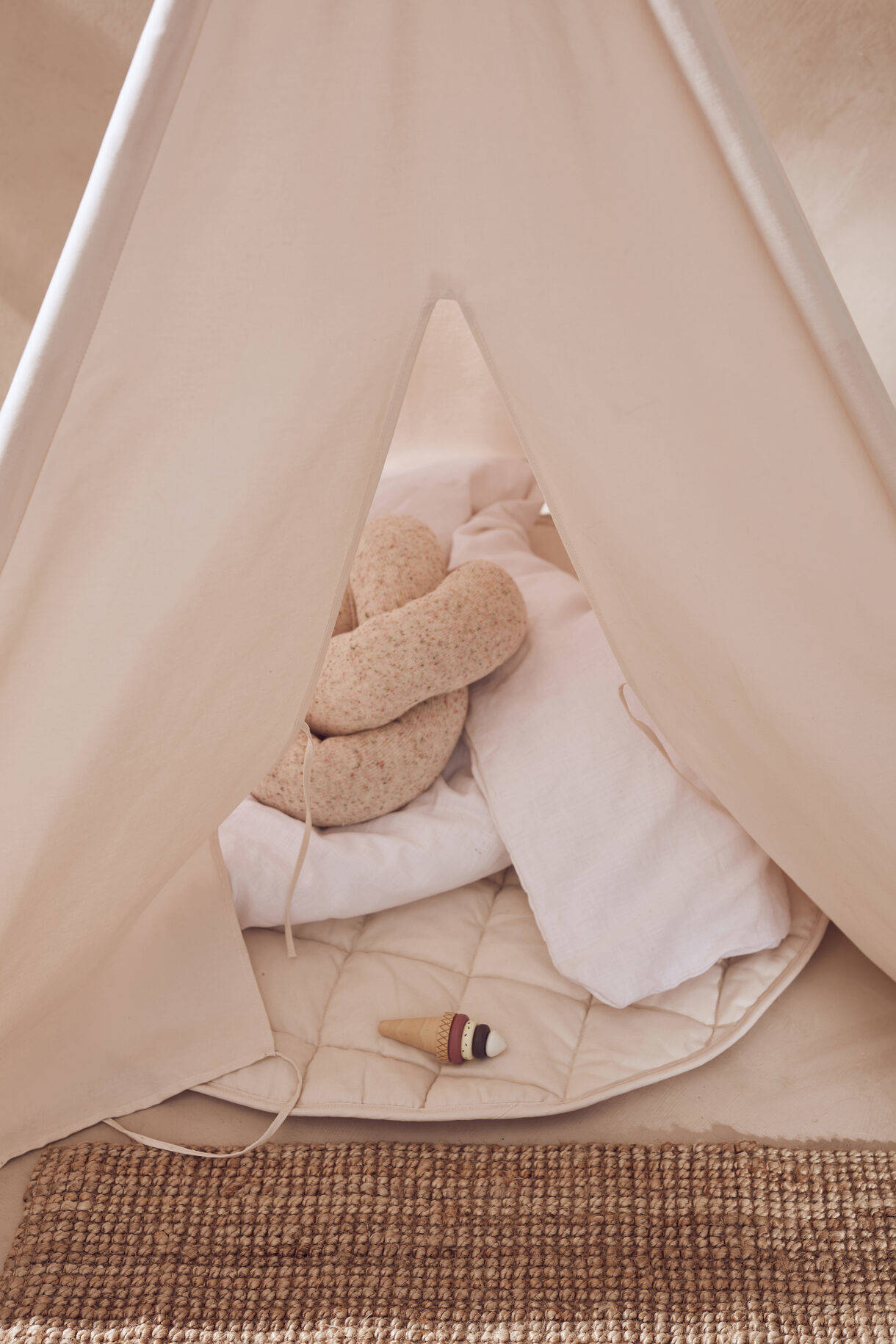 - 100% bawełna, drewno sosnowe, polietylen Materiał Tkanina: bawełna. Stelaż namiotu: sosna, PE.