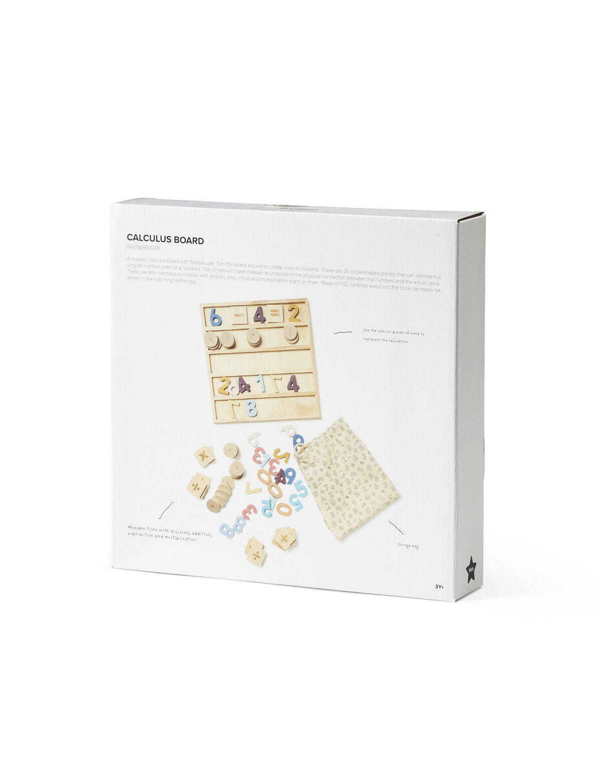 Odwróć tablicę, aby tworzyć wiersze lub kolumny. Zestaw zawiera m.in. 25 klocków w kształcie koła, które mogą symbolizować liczbę pojedynczą, dziesięć lub sto. Kółka pomogą dziecku zrozumieć fizyczny związek między liczbami a rzeczywistą wartością. Są też cyfry i klocki ze znakami dzielenia, dodawania, odejmowania i mnożenia. Zabawka wykonana z drewna z certyfikatem FSC. Klocki można przechowywać w tekstylnej torbie.