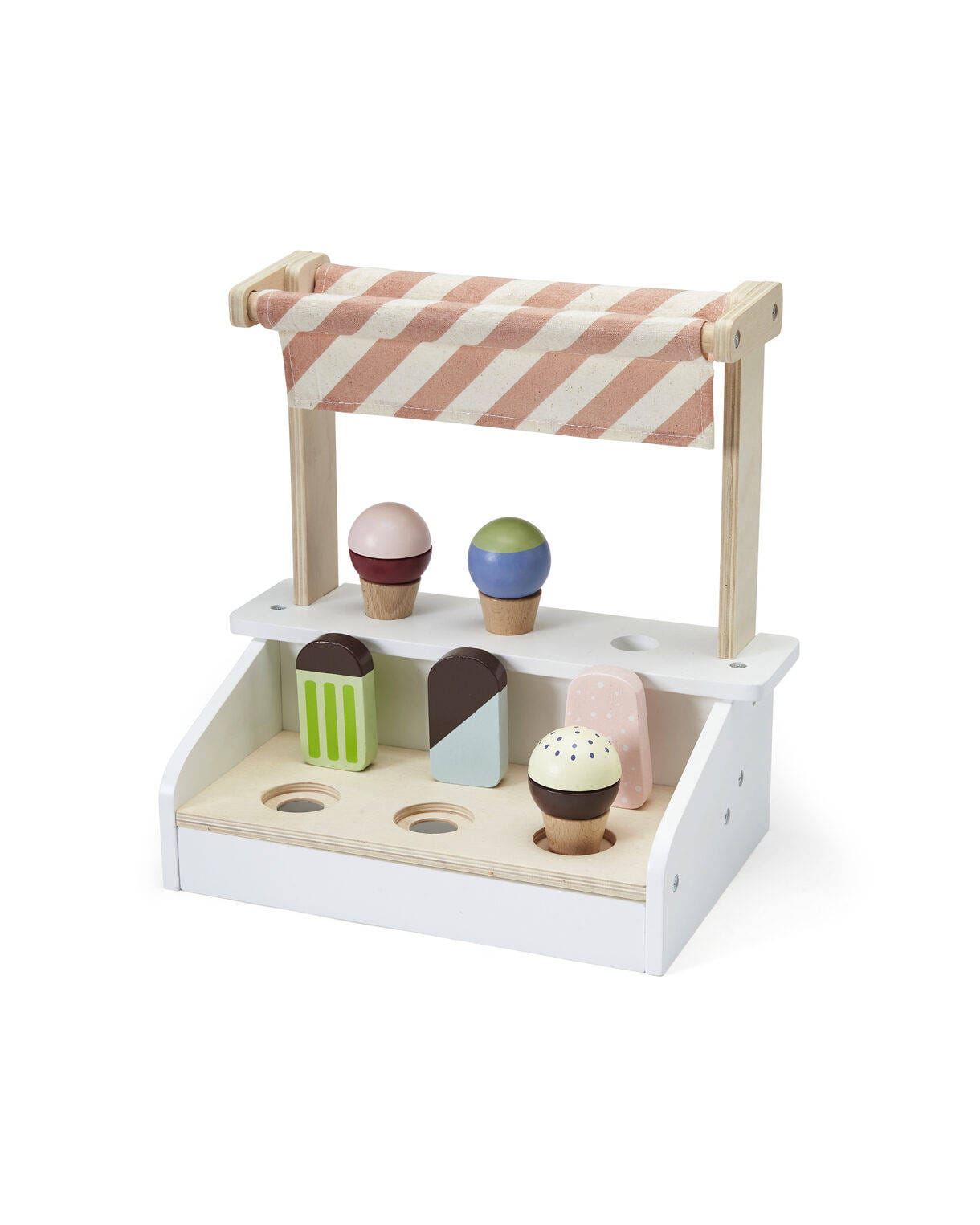 Zestaw z lodami – niezbędny na letnim przyjęciu – może stać się świetną inspiracją do zabawy. Informacje dodatkowe:MateriałStojak na lody: sklejka lipowa.Wafelek, patyk: buk.Lody: schima.Tkanina: bawełna.Zabawka nieodpowiednia dla dzieci poniżej trzeciego roku życia.Certyfikaty: EN71, oznaczenie CEInstrukcja czyszczenia:Czyść wilgotną ściereczką. Wytrzyj do sucha czystą szmatką. Regularnie sprawdzaj, czy wszystkie śruby są dokręcone, a części pozostają nienaruszone.