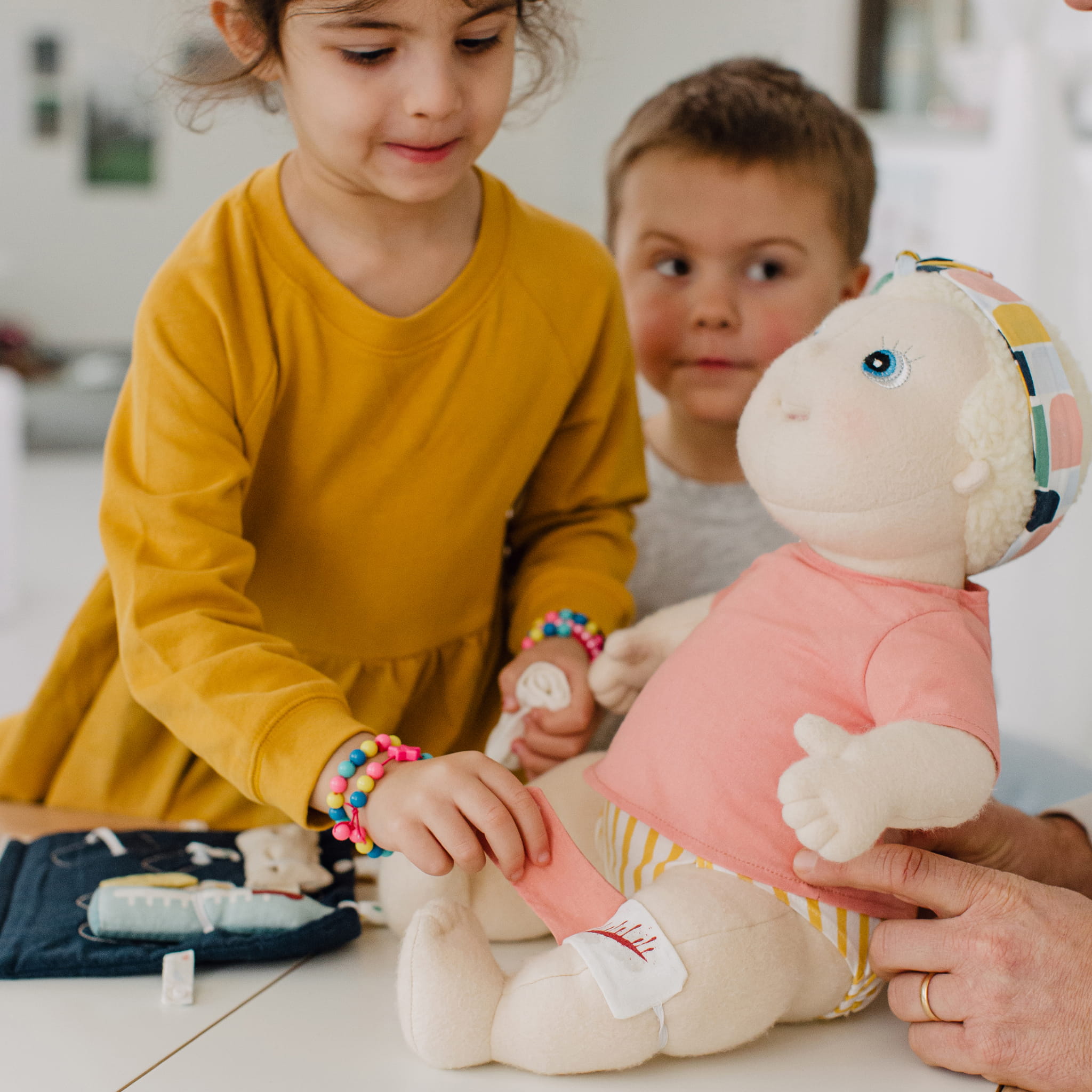 Lalka niemowlęca Esmé to emocjonalnie inteligentny przyjaciel, który pomaga w rozwoju języka, umiejętności zabawy i świadomości ciała. Ta miękka ręcznie robiona lalka została specjalnie opracowana wspólnie z ekspertami, aby pomóc dzieciom uczyć się o swoich ciałach, emocjach i świecie wokół nich poprzez zabawę.