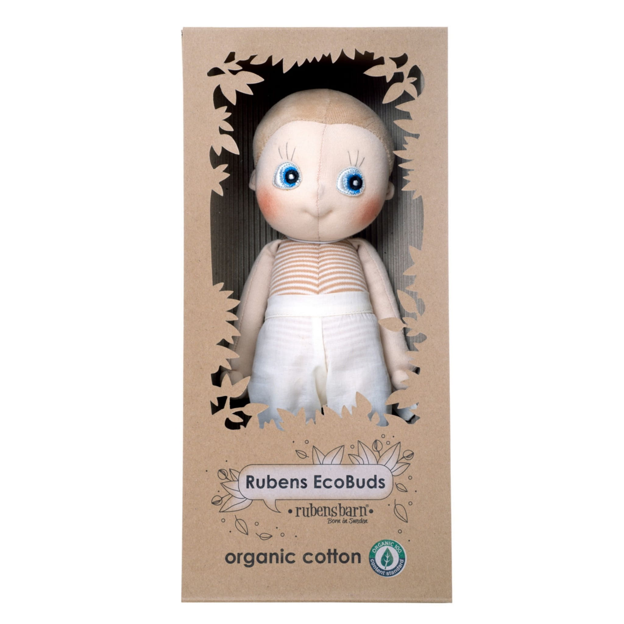 Ta miękka lalka ma 35 cm wzrostu, jasną skórę i blond włosy. Lalki Rubens Barn są projektowane w Szwecji, są wysokiej jakości i ręcznie wykonane, każda z radosnymi, unikalnymi postaciami. Lalki Rubens EcoBuds są wykonane z 100% organicznej bawełny certyfikowanej przez Organic Content Standard (OCS) i wypełnione 100% poliestrem z recyklingu zgodnie z Global Recycled Standard (GRS). Lalki Rubens Barn mają zabawne i przyjazne postacie lub opowieści, które pomagają dzieciom rozwijać kreatywność, odkrywać emocje oraz rozwijać empatię.