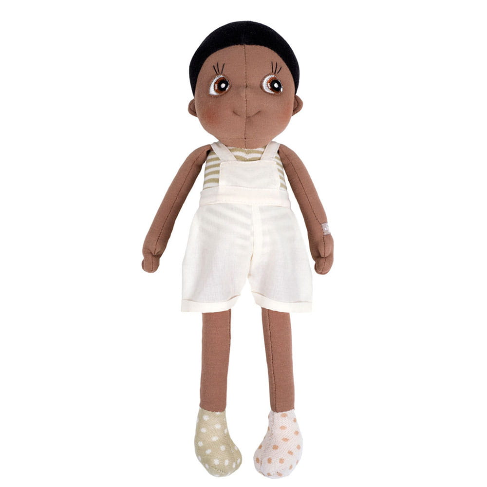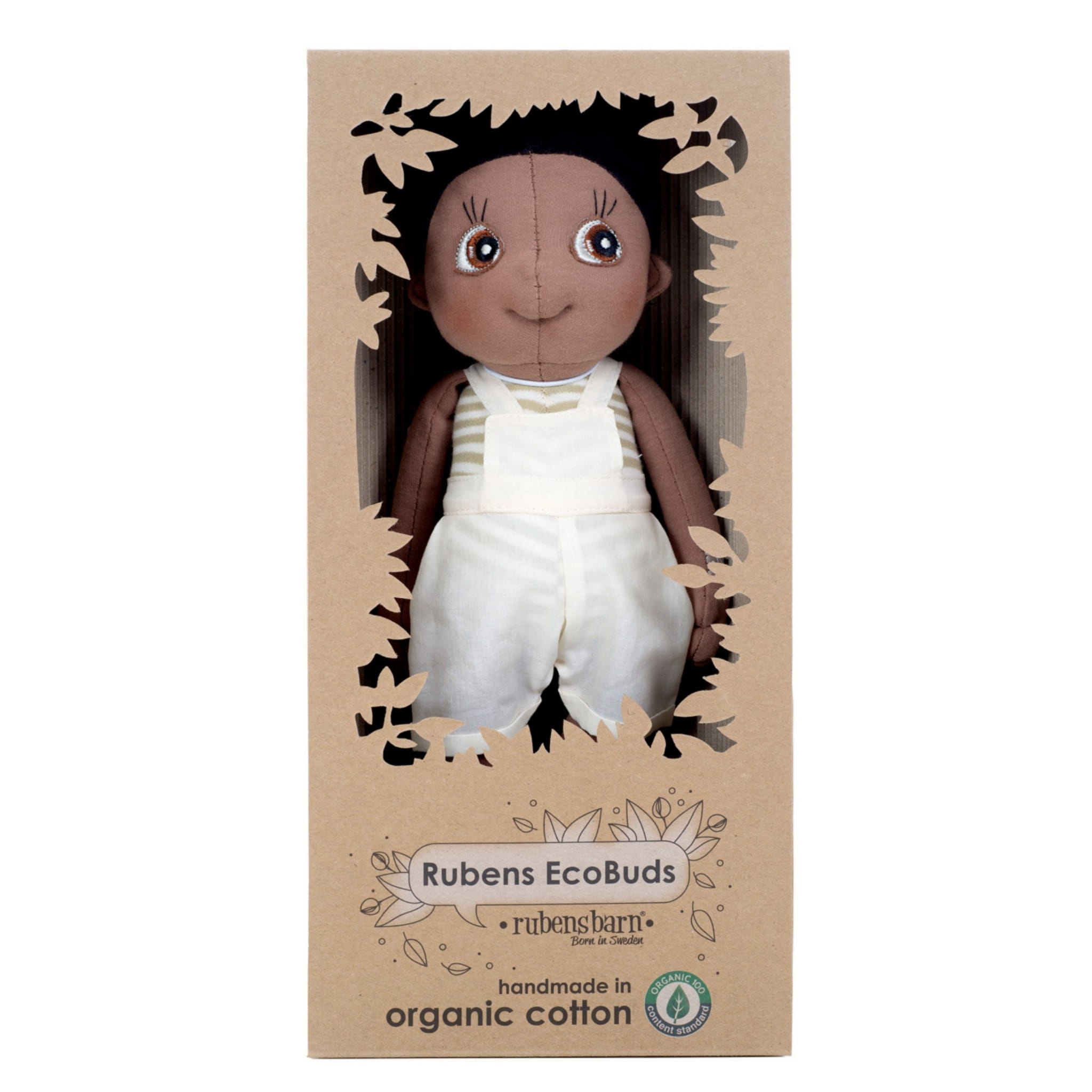 Ta miękka lalka ma 35 cm wzrostu, ciemną skórę i czarne włosy. Lalki Rubens Barn są projektowane w Szwecji, są wysokiej jakości i ręcznie wykonane, każda z radosnymi, unikalnymi postaciami. Lalki Rubens EcoBuds są wykonane z 100% organicznej bawełny certyfikowanej przez Organic Content Standard (OCS) i wypełnione 100% poliestrem z recyklingu zgodnie z Global Recycled Standard (GRS). ! Lalki Rubens Barn mają zabawne i przyjazne postacie lub opowieści, które pomagają dzieciom rozwijać kreatywność, odkrywać emocje oraz rozwijać empatię.