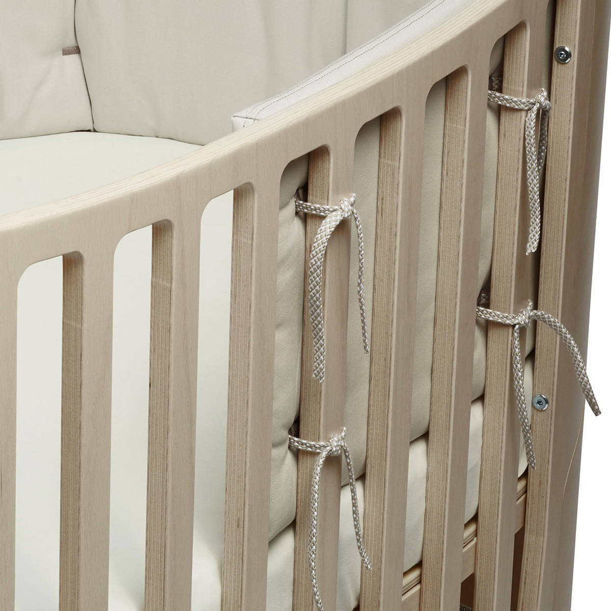 Jeśli chcesz, by wyściełane było całe łóżeczko, możesz użyć dwóch ochraniaczy. Ochraniacz mocuje się za pomocą wiązań i w razie potrzeby można go zastosować także w nogach łóżka. Dno łóżeczka dziecięcego Leander Classic™ może być zamontowane na dwóch wysokościach, a ochraniacz będzie pasował do obu opcji.