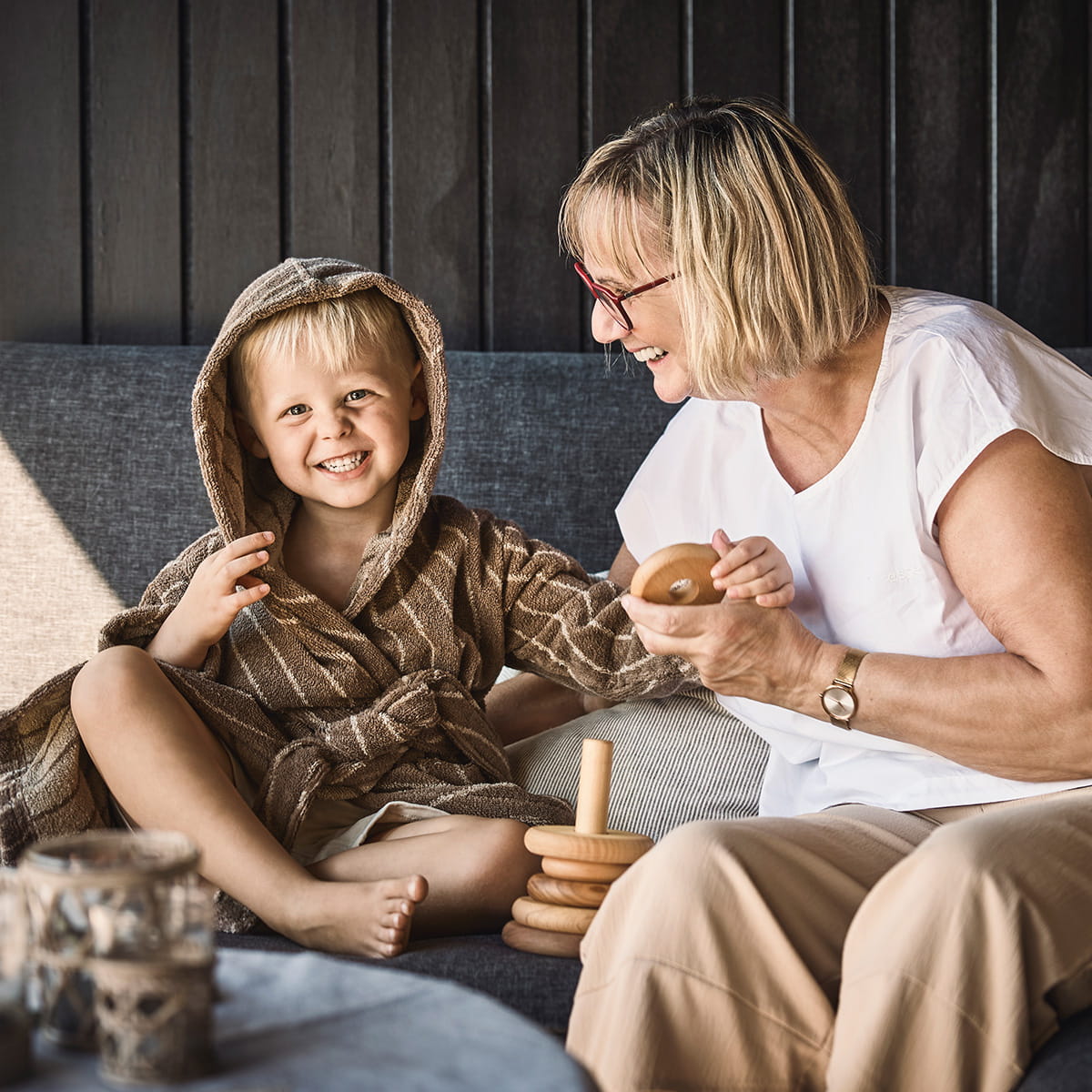 Szlafrok LEANDER zmienia poranne i wieczorne czynności w przytulne i praktyczne chwile zarówno dla dzieci, jak i rodziców, jednocześnie otulając dziecko ciepłem i wygodą.
