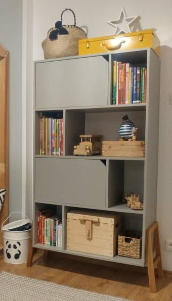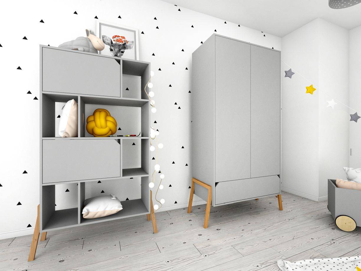 Niezbędnym wyposażeniem pokoju dziecięcego jest regał, który pomieści wszelkie dziecięce skarby, zabawki i książeczki. Dużym atutem regału jest rozmieszczenie półek, do których swobodny dostęp mają dzieci od najmłodszych lat. Takie rozwiązanie uczy je organizacji przestrzeni oraz porządku. Regał z powodzeniem może pełnić rolę szafy, ponieważ dzięki zamknięciu półek drzwiczkami, dyskretnie zakrywa ich zawartość.