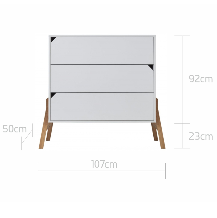 Obok łóżeczka, drugi najważniejszy mebel w pokoju dziecka. W kolekcji Lotta prezentujemy trzyszufladową, pojemną komodę. Idealnie pasuje do łóżeczka z tej samej serii, jest zbliżona do niego wysokością, dzięki czemu może stanowić miejsce, w którym trzymać można najpotrzebniejsze dziecięce akcesoria. Blat komody można wyposażyć w przewijak z tej samej kolekcji i umieścić po prawej, lewej lub na środku blatu komody.