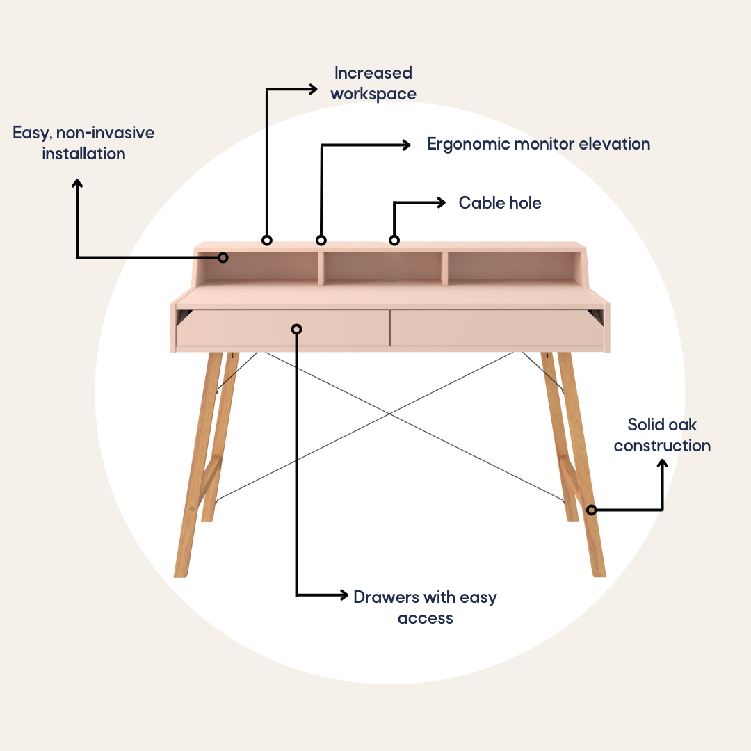 -Zwiększenie przestrzeni roboczej: Dzięki dodatkowemu miejscu, które oferuje nadstawka, można lepiej zarządzać przestrzenią na biurku. To idealne rozwiązanie na drobne akcesoria biurowe czy szkolne, jak notatniki, długopisy czy smartfony, dzięki czemu przestrzeń pracy jest bardziej zorganizowana i funkcjonalna.