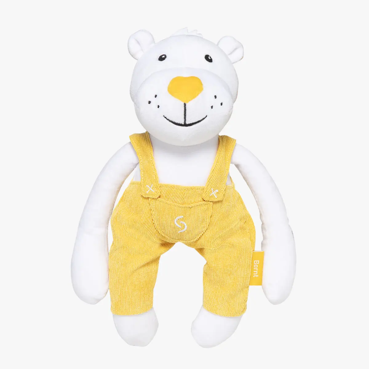 Miś Bernt to połączenie uniwersalnych kolorów – bieli oraz żółtego lub turkusowego – dzięki zastosowaniu takiej palety barw będzie on niezastąpionym kompanem podczas zabaw zarówno dla dziewczynek, jak i chłopców. Może on towarzyszyć nowemu właścicielowi już od pierwszego dnia życia.