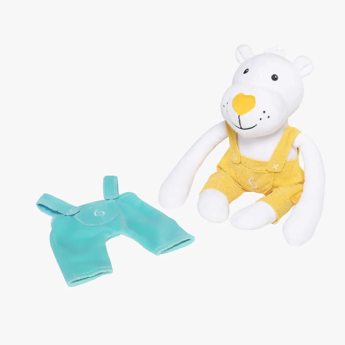 W komplecie z misiem udostępniane są dwie pary spodni – pluszowe oraz sztruksowe, zapewniające więcej doznań sensorycznych. Pozwolą one przebrać pluszaka, w zależności od upodobań dziecka.