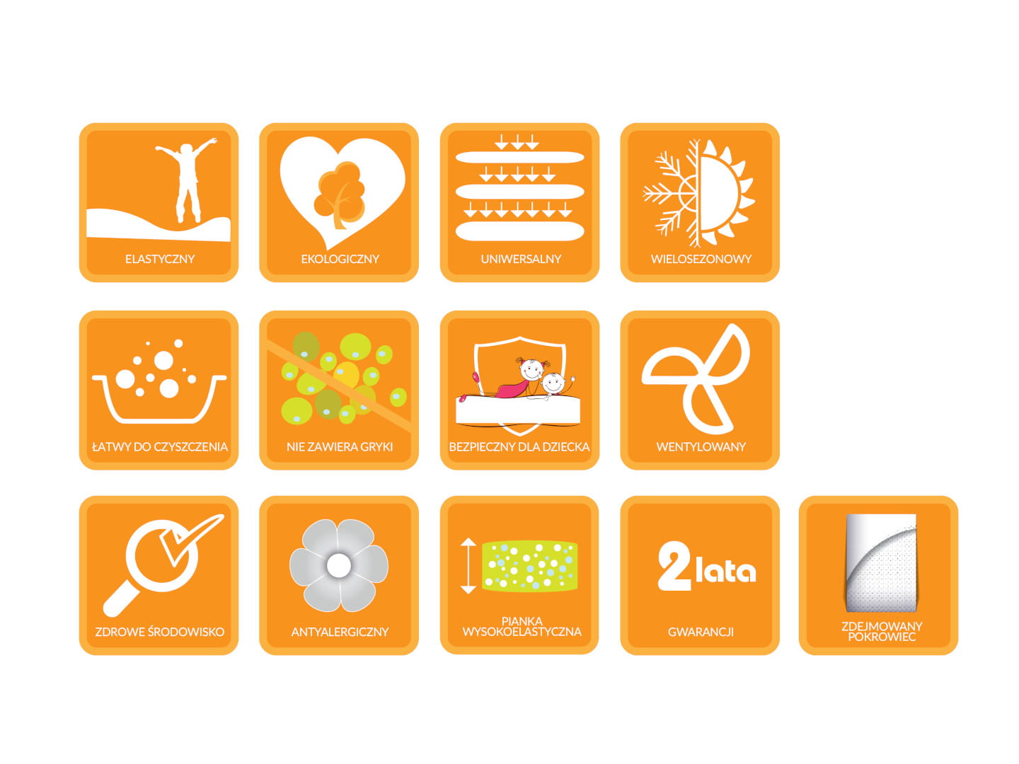 UWAGI: materac twardy i średnio-twardy, dwustronny, dwie strony użytkowe. Strona gładka bezstrefowa dla dzieci mniejszych (2+) i strona 3 strefowa dla dzieci starszych o większej wadze. Możliwość wykonania rozmiarów nietypowych. Nie zginamy i nie rolujemy do transportu. Rekomendowany do każdego rodzaju stelaża. Kolor zastosowanego wkładu piankowego może się różnić od pokazanego na zdjęciu. Wyrób Medyczny kl. I