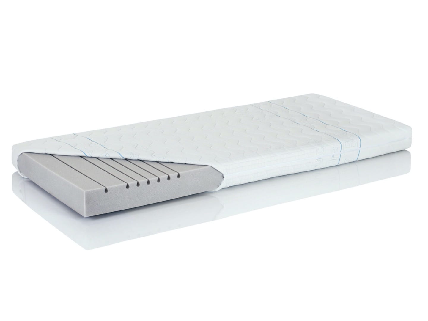 BUDOWA: Płyta z pianki wysoko elastycznej typu kaltschaum (HR) o dwóch różnych stronach użytkowych 3 strefowej perforowanej i bezstrefowej - grubości 11 cm. Pokrowiec zewnętrzny z dzianiny pikowanej włókniną klimatyzowaną. Zastosowanie w pokrowcu materaca technologii Aegis nadaje jej funkcje ochronne i profilaktyczne. Działanie selektywne wobec niechcianych mikroorganizmów stawia AEGIS na czele dzianin antyalergicznych. Dzianina HEVEA AEGIS Natural Care jest bezzapachowa, miękka, odporna na mycie i wielokrotne pranie. W opcji dzianina Medica szara – bawełna 40% / pe 60%. Pokrowce można prać stosując programy dla dzianin delikatnych w temp. do 60°C lub chemicznie. Certyfikat Oeko-Tex Standard 100. Wkład piankowy o dużej gęstości zapewnia trwałość produktu i dobre oparcie dla kręgosłupa. Skład dzianiny –bawełna 30%/pe 70%, apretura AEGIS. Waga materaca 3 kg (160/80 cm)- 8 kg (200/90). Wysokość materaca 12 cm.