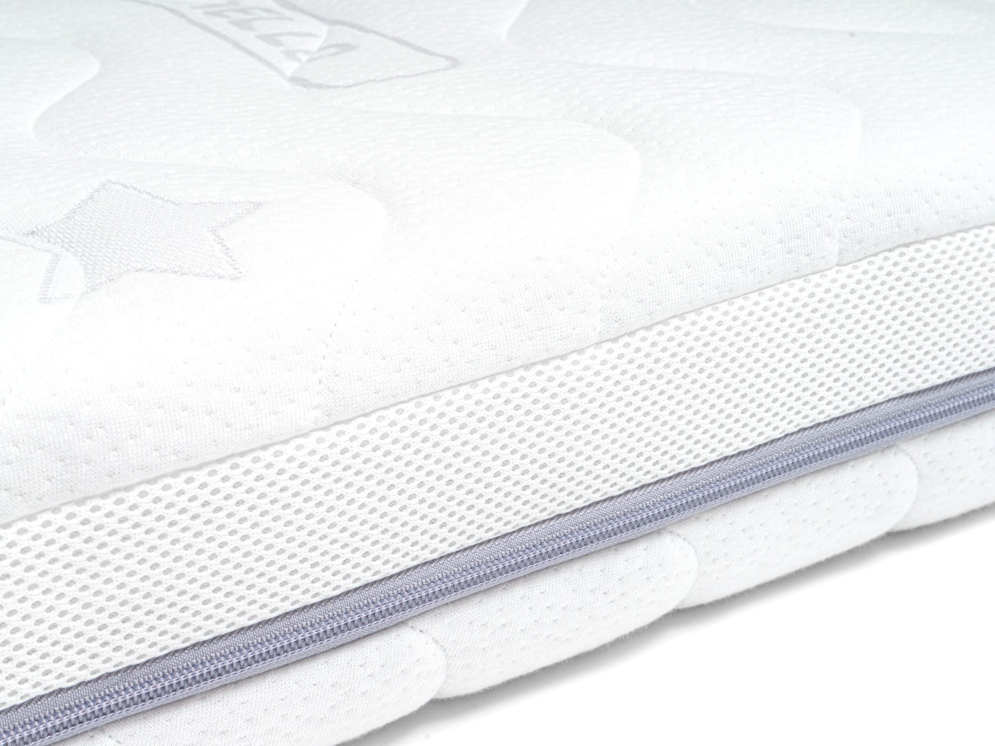 UWAGI: Materac twardy i średnio-twardy, dwustronny, dwie strony użytkowe. Strona gładka bezstrefowa dla dzieci mniejszych (2+) i strona 3 strefowa dla dzieci starszych o większej wadze. Możliwość wykonania rozmiarów nietypowych. Nie zginamy i nie rolujemy do transportu. Rekomendowany do każdego rodzaju stelaża. Kolor zastosowanego wkładu piankowego może się różnić od pokazanego na zdjęciu.