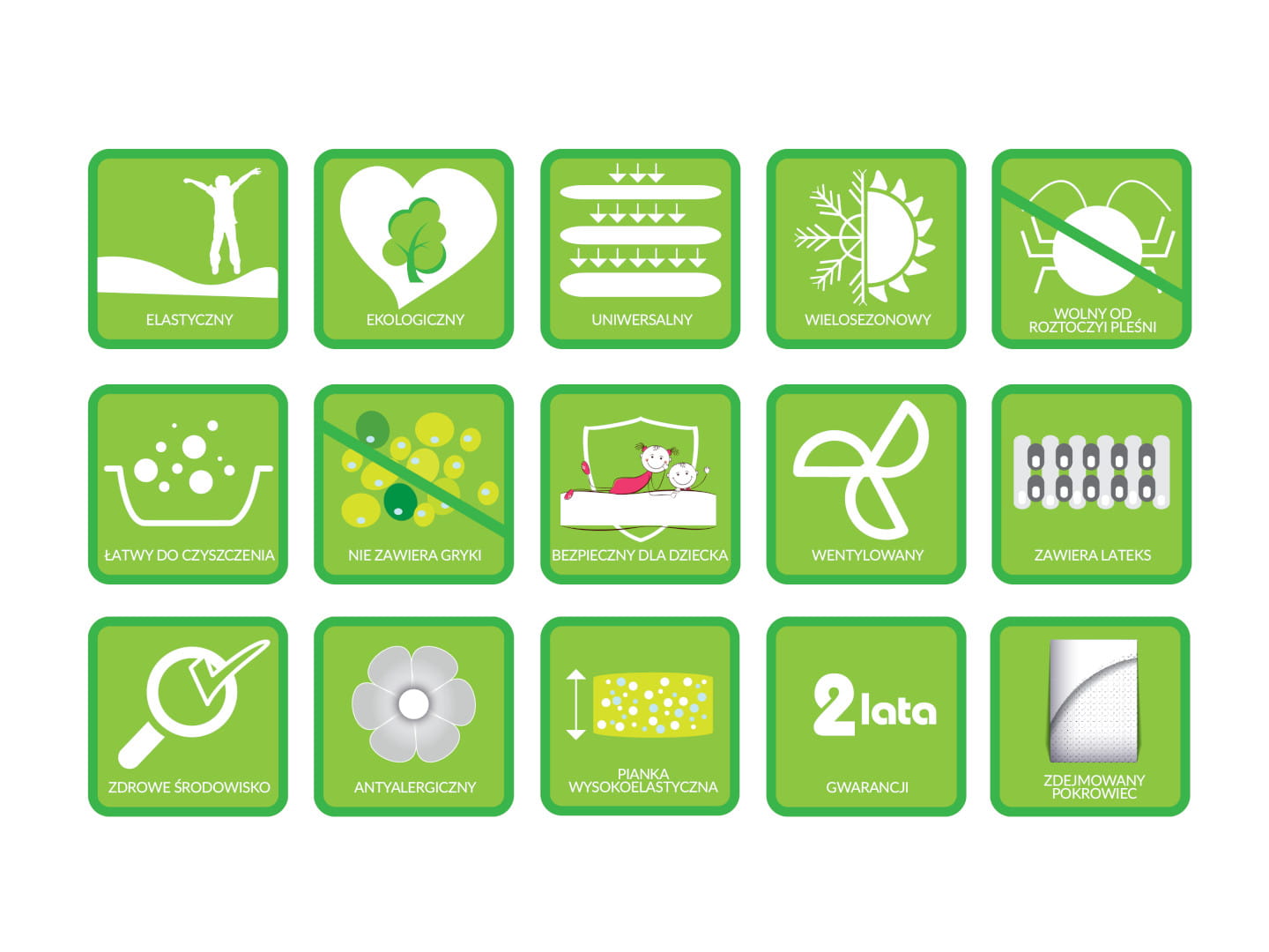ZASTOSOWANIE: łóżeczka i tapczany dziecięce i młodzieżowe oraz łóżka piętrowe, waga użytkownika do 30 kg (rozmiary 120/60-160/70) i 70 kg (rozmiary od 160/80 do 90/200).